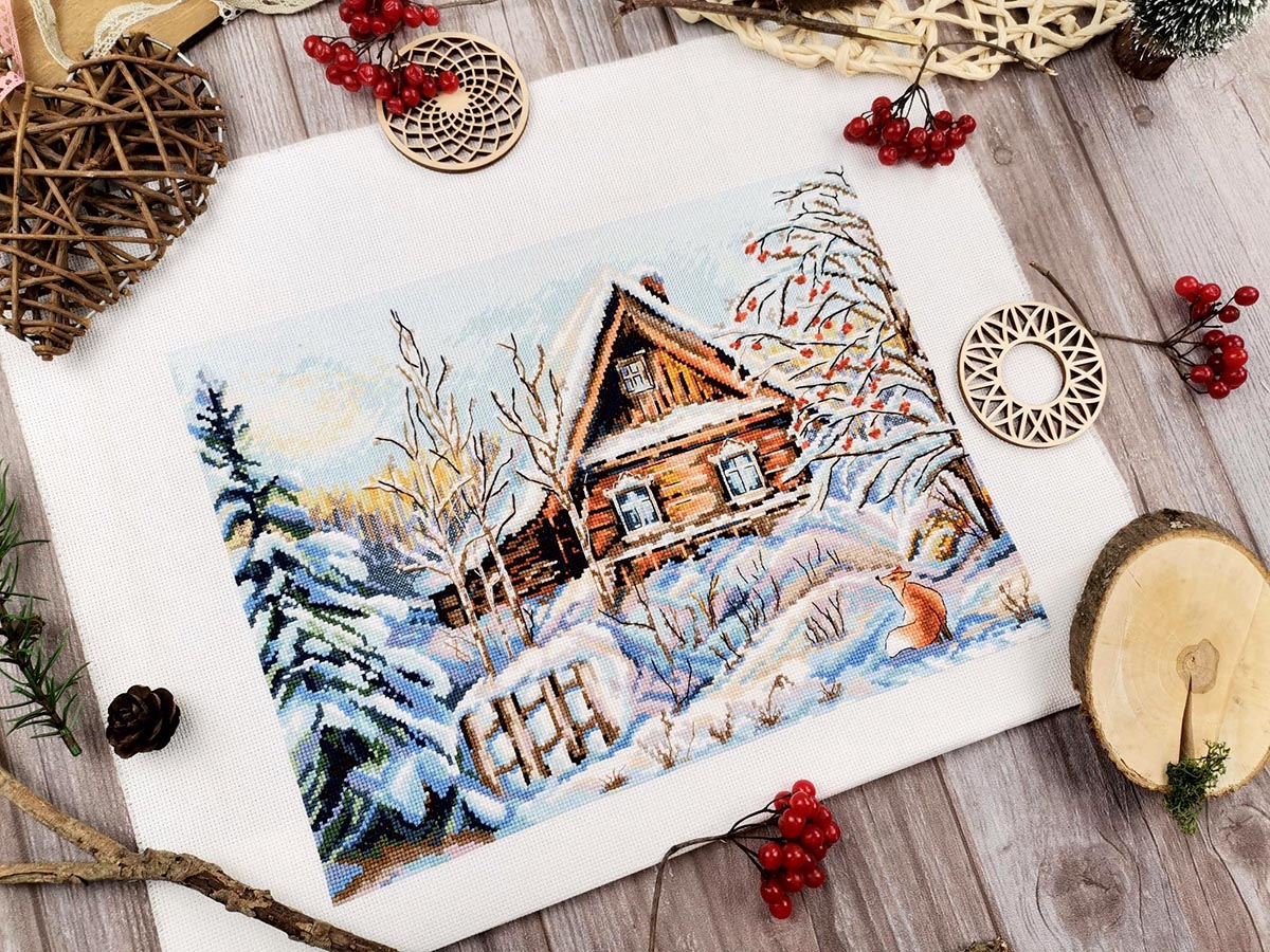канва Aida 16 ct молочная, мулине Finca 28 цв., игла, инструкция, схема комбинированная