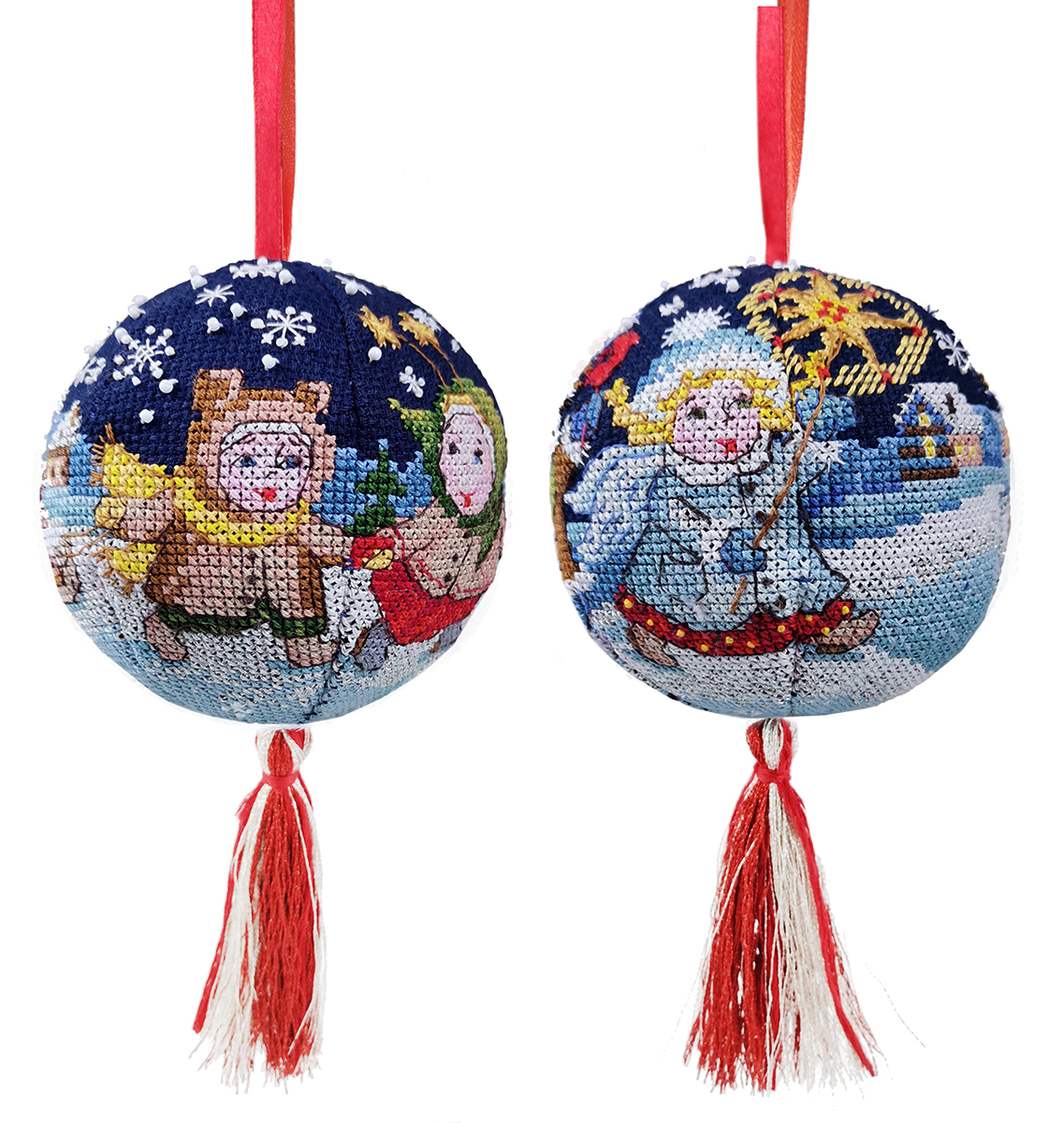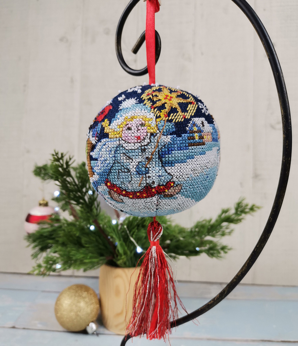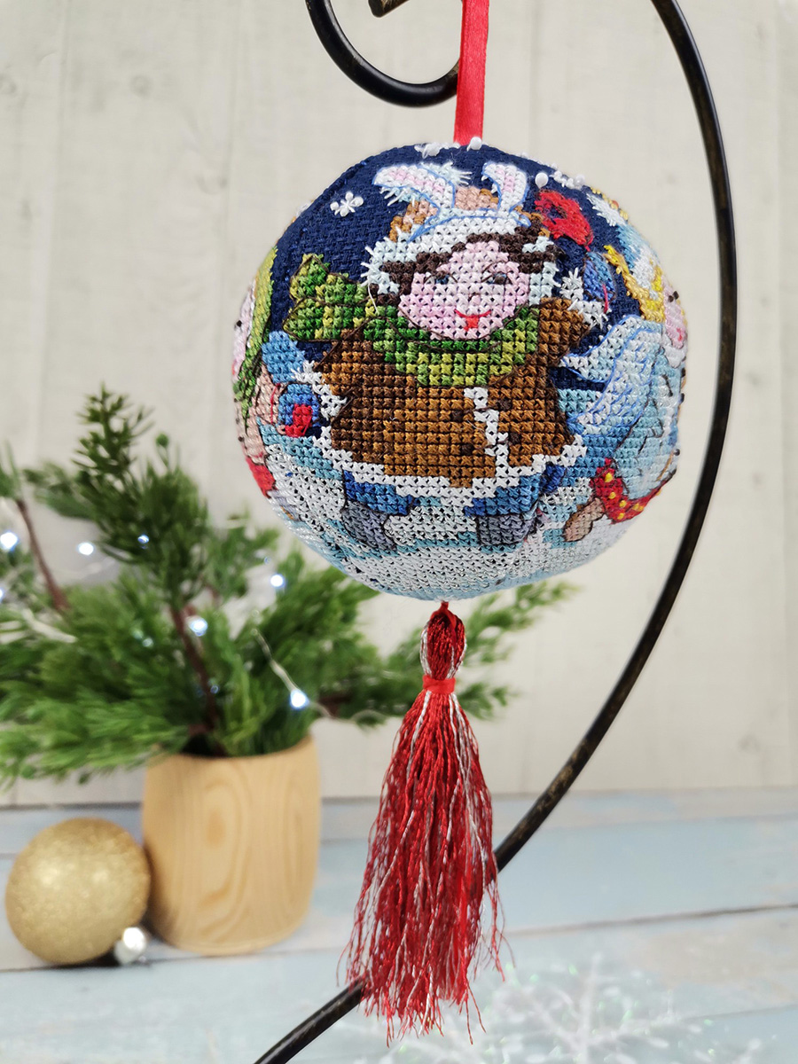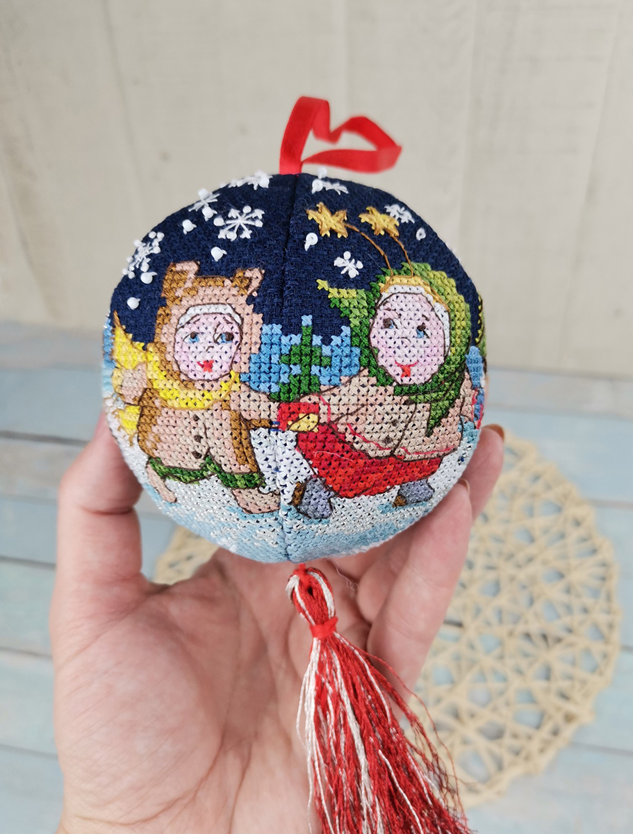 Вышитый, новогодний шар, а почему бы и нет? – подумали мы. Что может лучше украсить вашу семейную ёлку, чем игрушка хранящая тепло ваших рук! Забавный сюжет, зимнее настроение и главное, этот шарик никогда не разобьется.