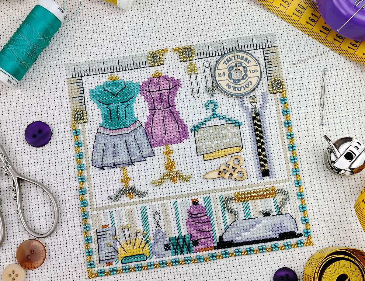 Серию объединяют размер, основа Аида 14ct, частичная вышивка бисером и декоративные пришивные элементы. Мулине Finca не разобраны на планшетки, а связаны узелком. Схема и инструкция черно-белая. Электронная схема XSD, QR код в наборе, указание о наличие схемы - знак на обложке.