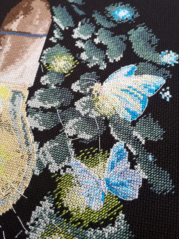 канва Aida 14 ct чёрная, мулине Finca 30 цв., игла, инструкция