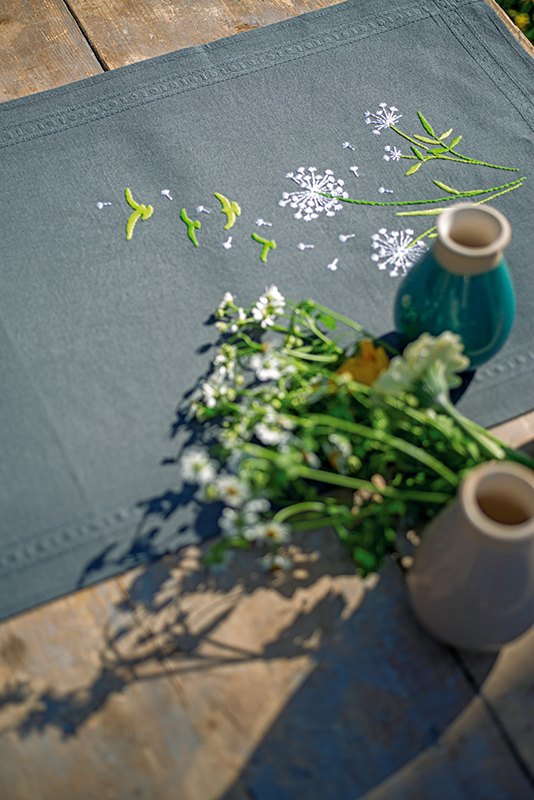 готовая скатерть 100% хлопок с напечатанным рисунком, нити для вышивания, игла, инструкция, схема