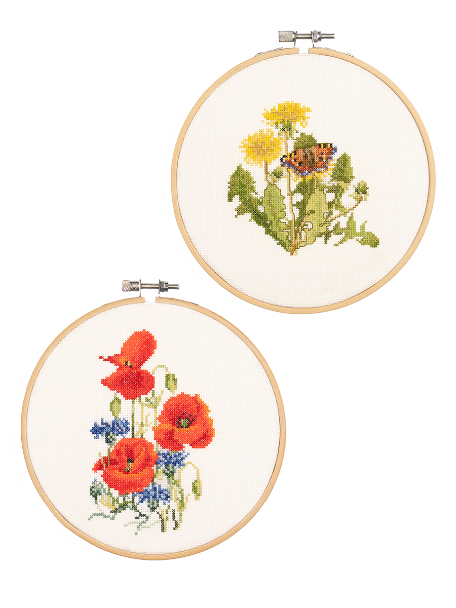канва Aida 16 ct, пяльца (диаметр 15 см) 2 шт, мулине, игла, схема, инструкция