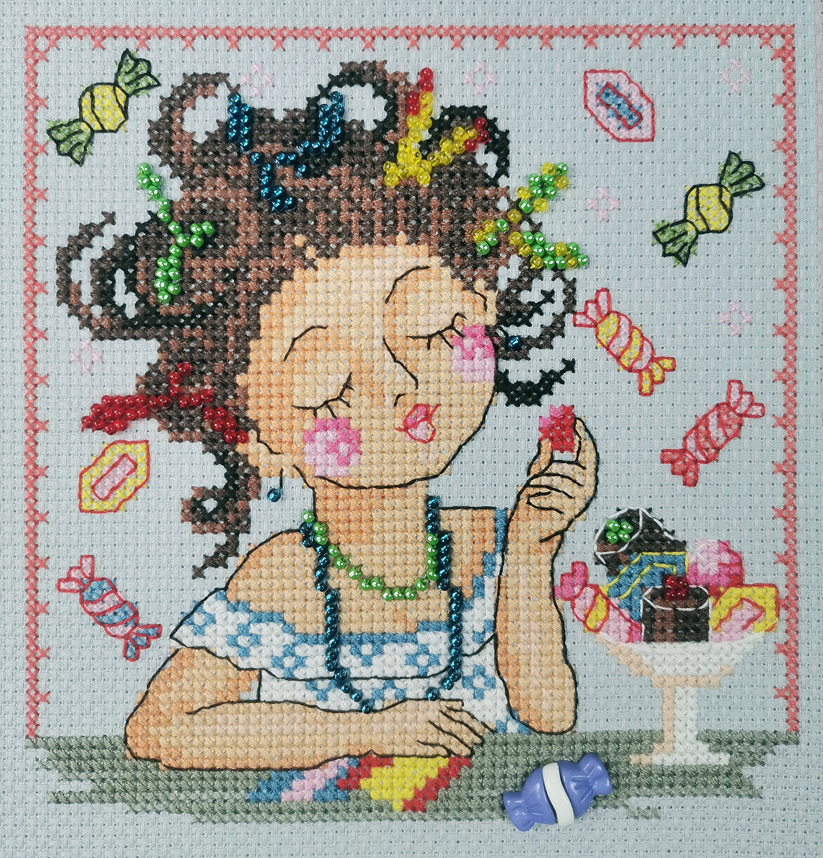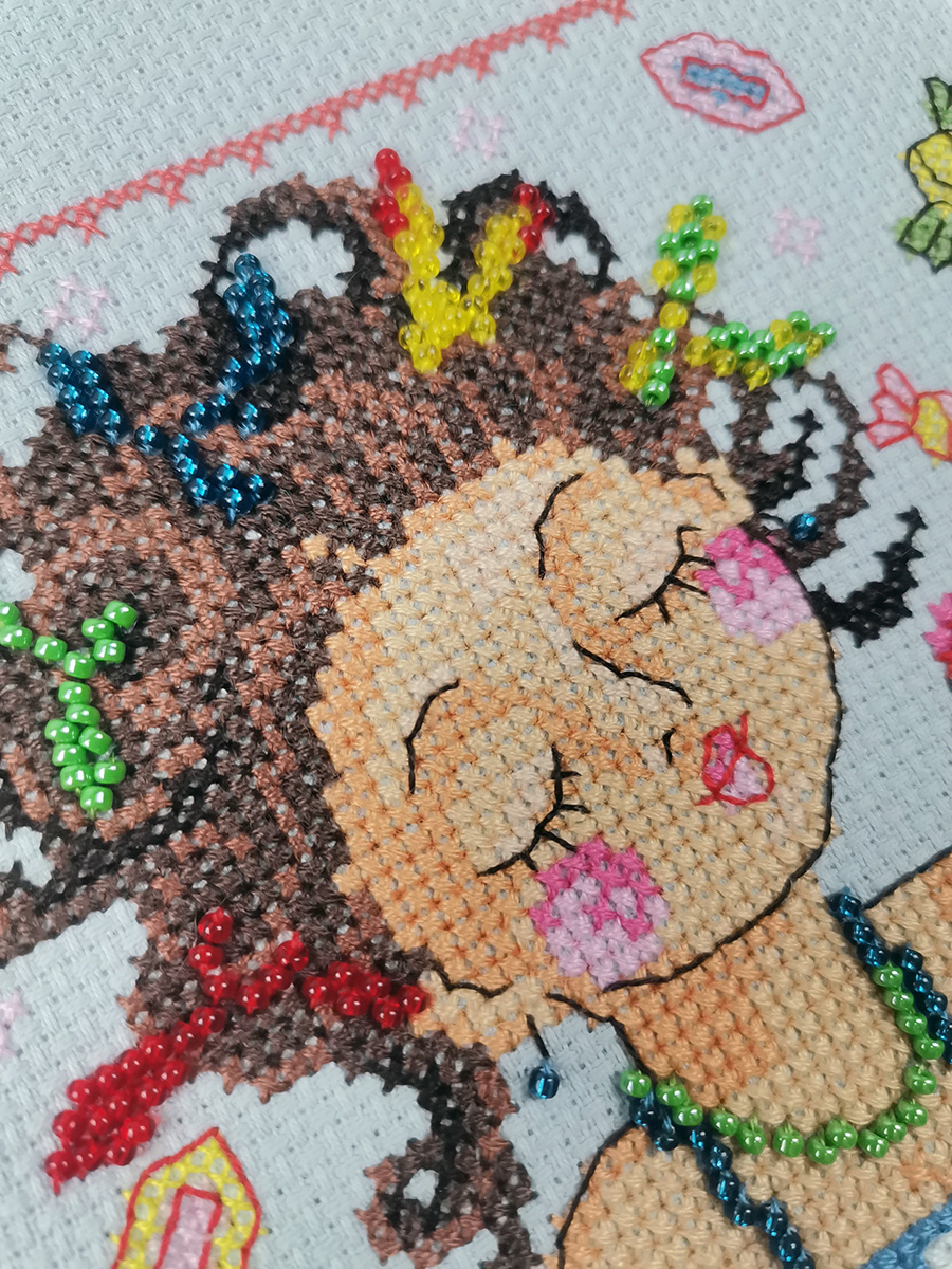 счетный крест + частичная вышивка бисером