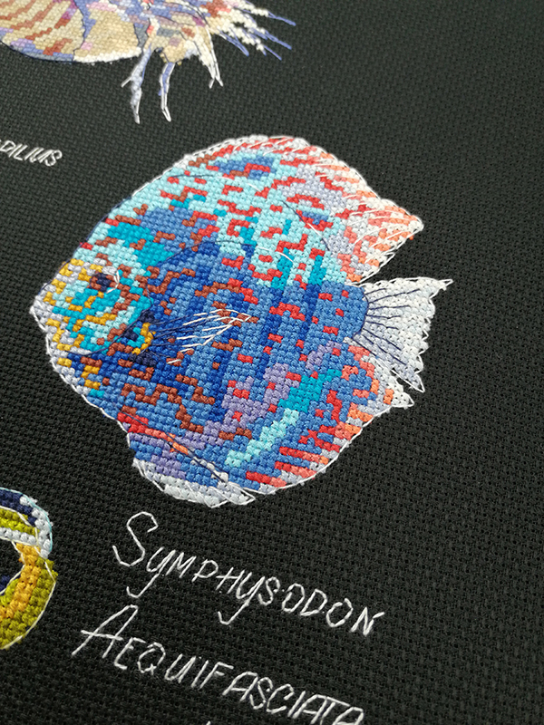 канва Aida 14 ct черная, мулине Finca 40 цв., игла, инструкция, схема черно-белая