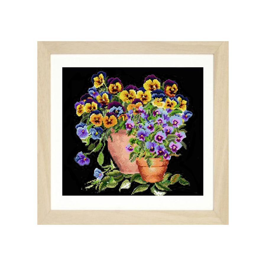 —Набор для вышивания "Анютины глазки", канва аида (черная) 16 ct. Арт 601.05