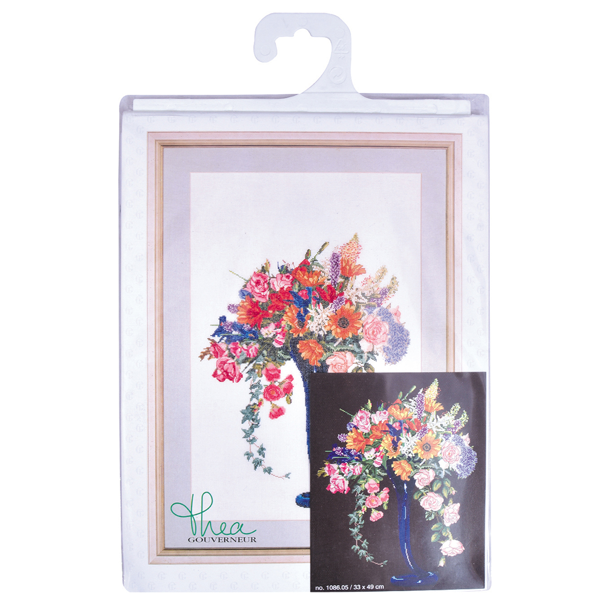 Наборы Thea Gouverneur укомплектованы качественными материалами, такими как мулине DMC из 100% хлопка и разные виды тканей для вышивания производства Zweigart. Наборы обозначенные буквой А после номера содержат в составе канву Aida, если в артикуле есть обозначение .05 – то этот набор укомплектован канвой Aida чёрного цвета. Также в ассортименте есть наборы на 100% льне и канве Jobelan. Черно-белые схемы тщательно прорабатываются вручную. Используется богатая цветовая палитра ниток, но в ассортименте компании есть и монохромные дизайны. Нитки разобраны по символам и закреплены на органайзере. Стрелка на бумажном органайзере указывает вверх, определяя правильность чтения символов.