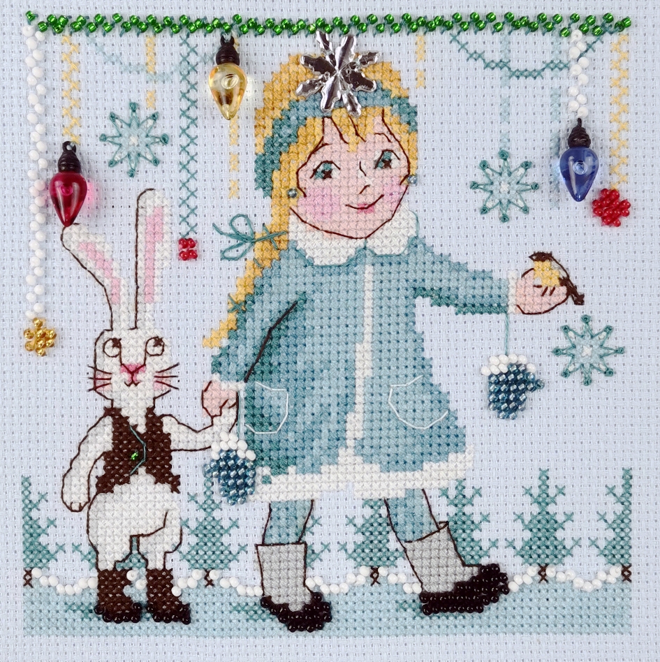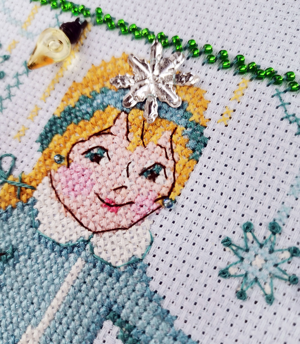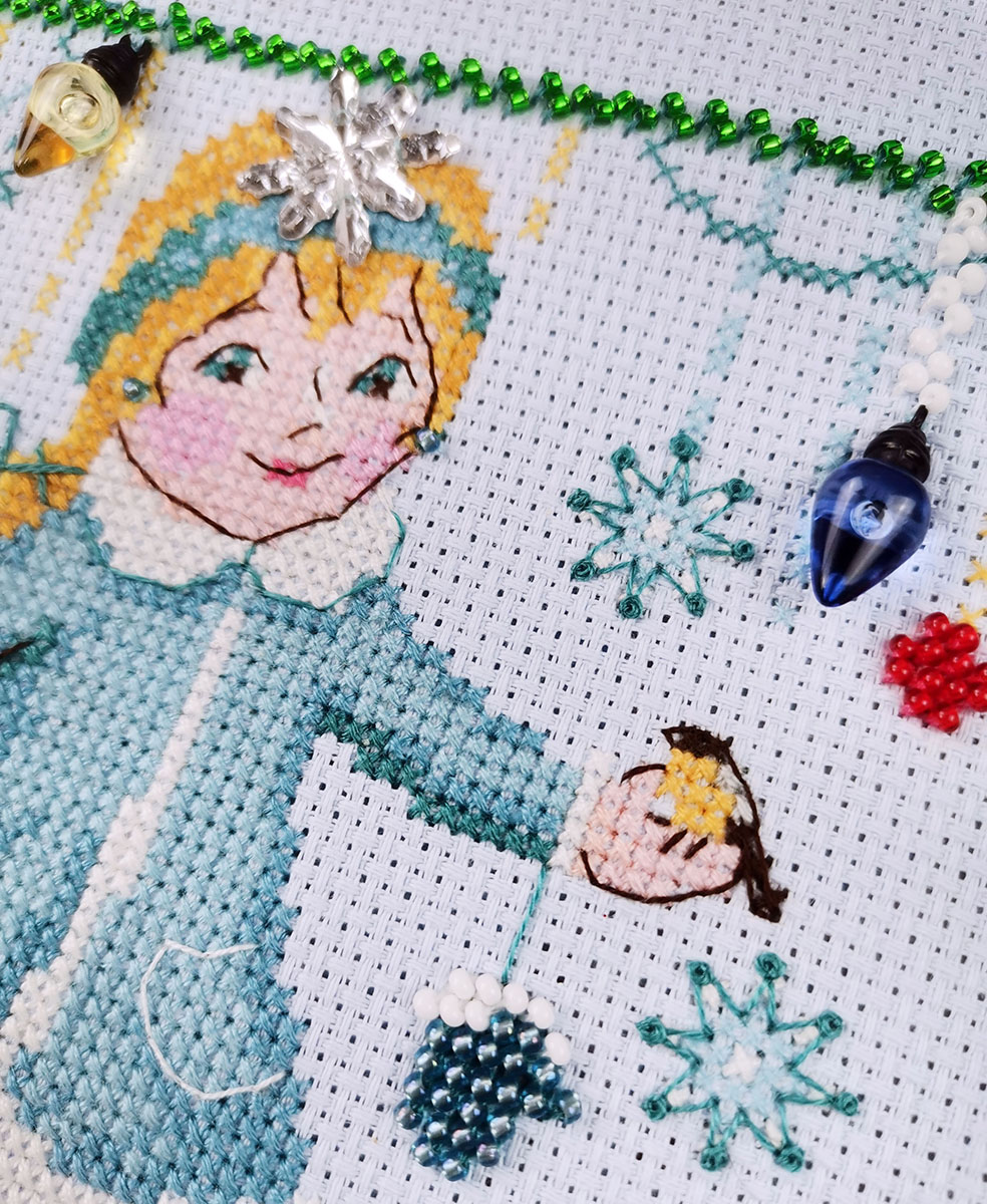 счетный крест + частичная вышивка бисером