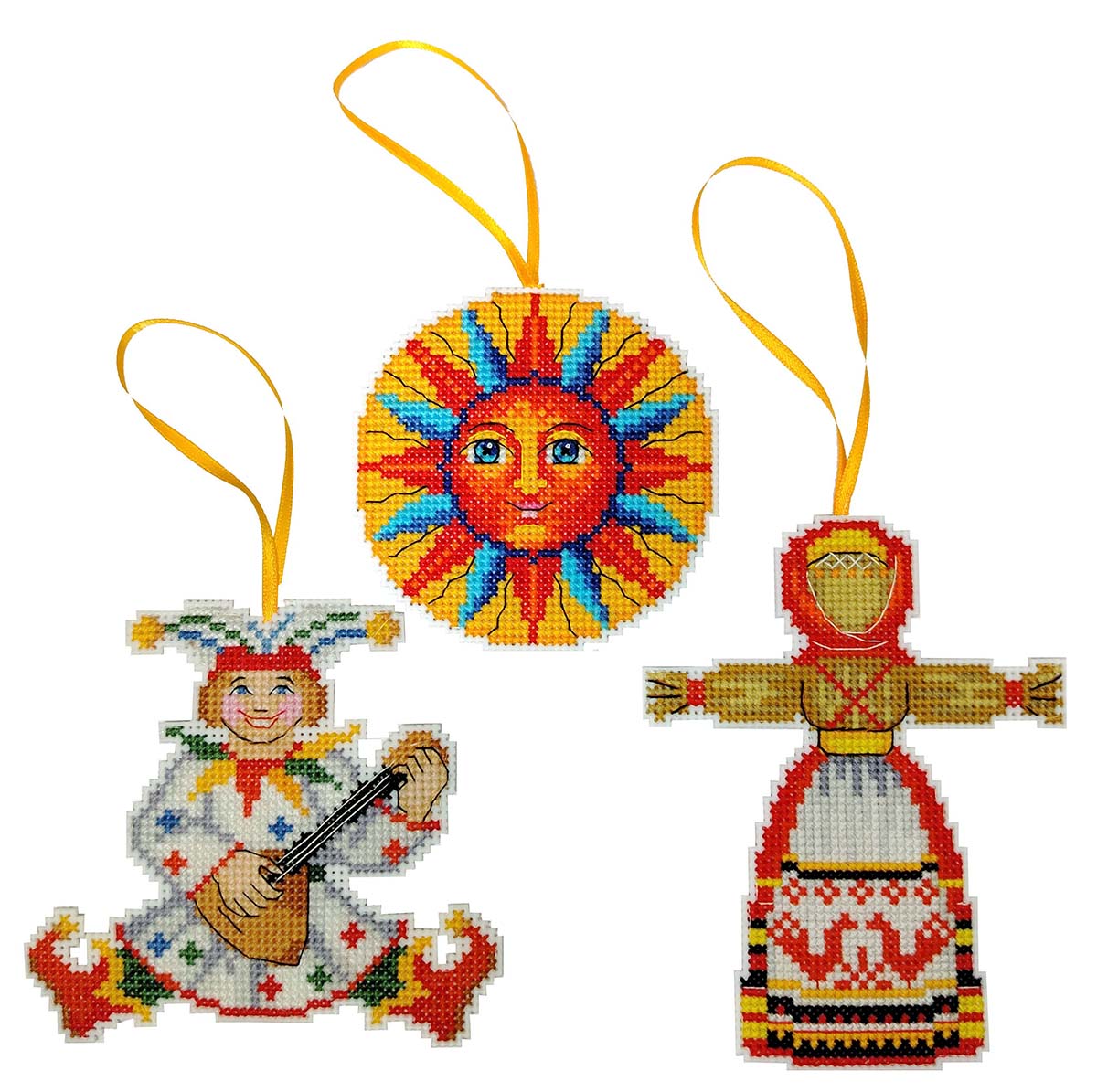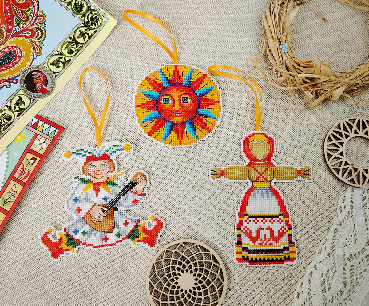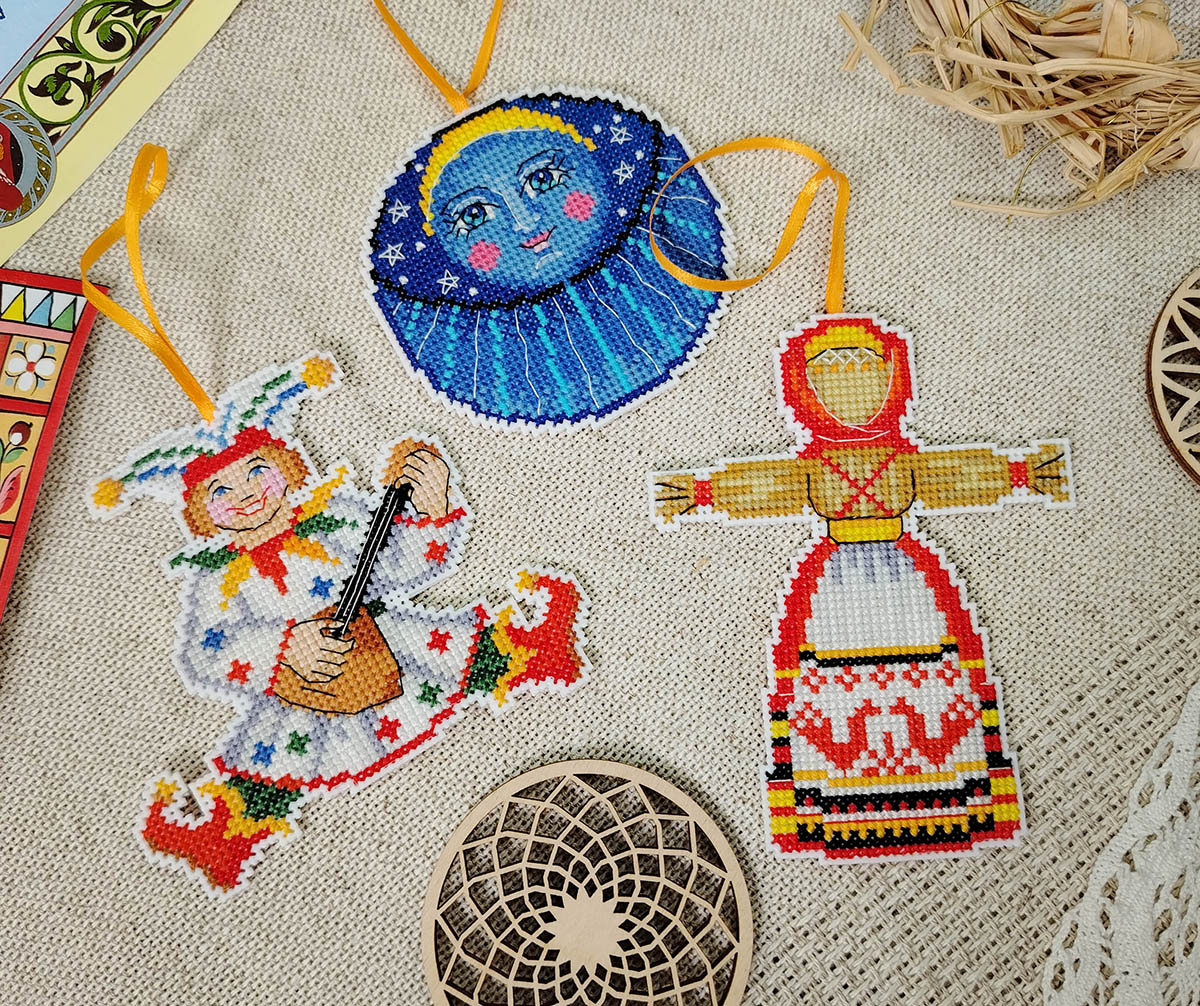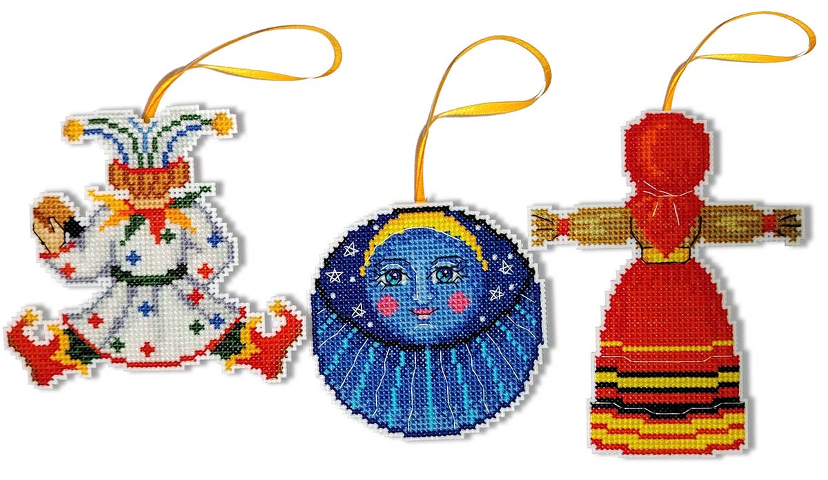 Канва пластиковая белая, мулине Finca 27 цв., игла, инструкция, схема комбинированная 3 шт, 11см х 10 см, 10 см х 12 см, д= 9 см