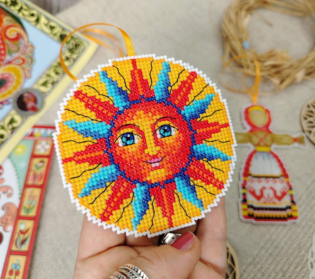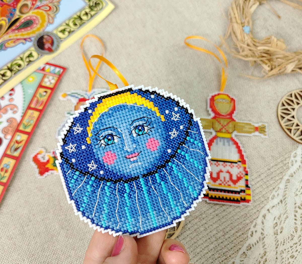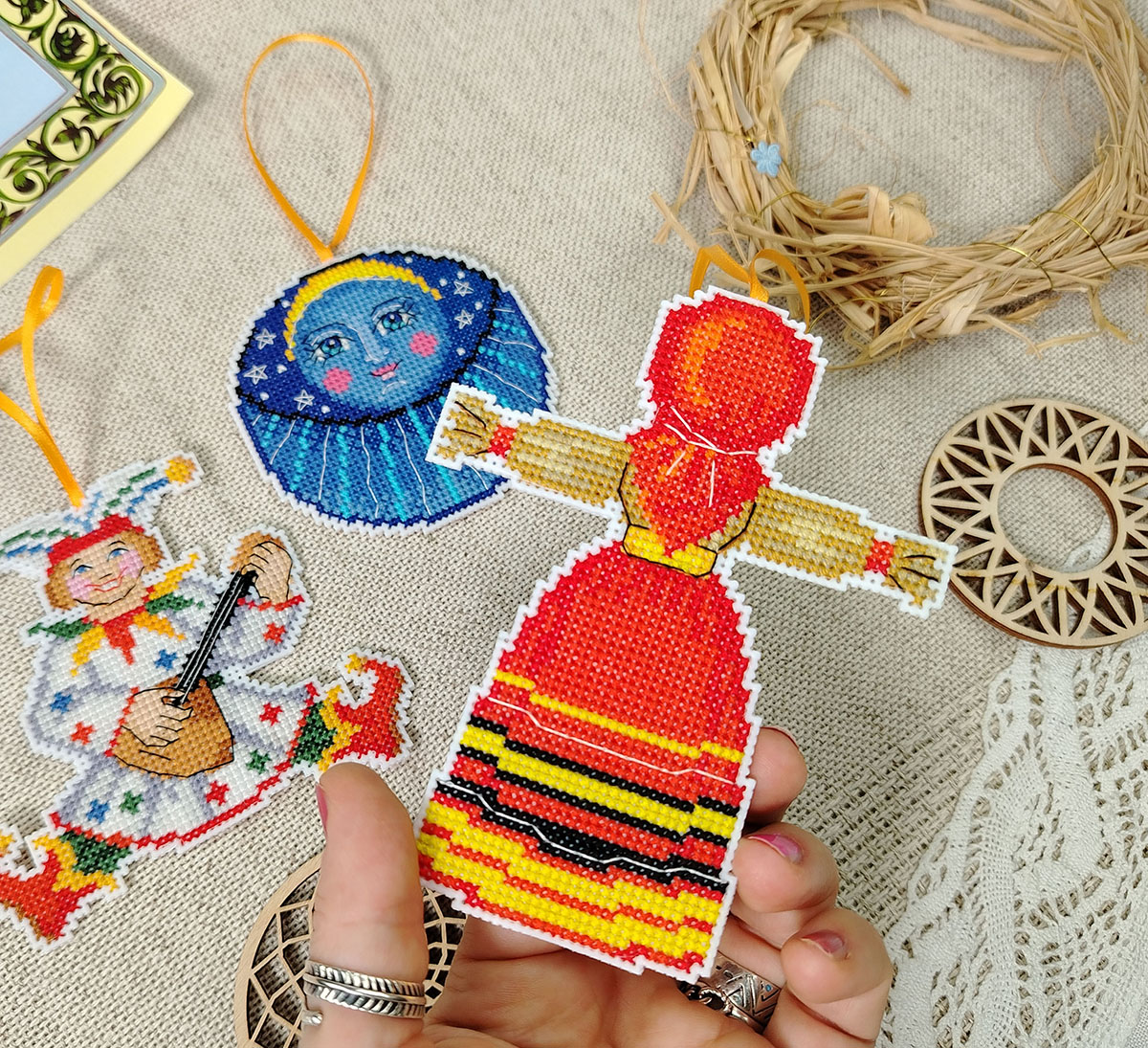 Канва пластиковая белая, мулине Finca 27 цв., игла, инструкция, схема комбинированная 3 шт, 11см х 10 см, 10 см х 12 см, д= 9 см