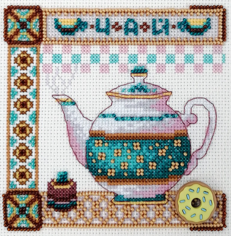 счетный крест + частичная вышивка бисером