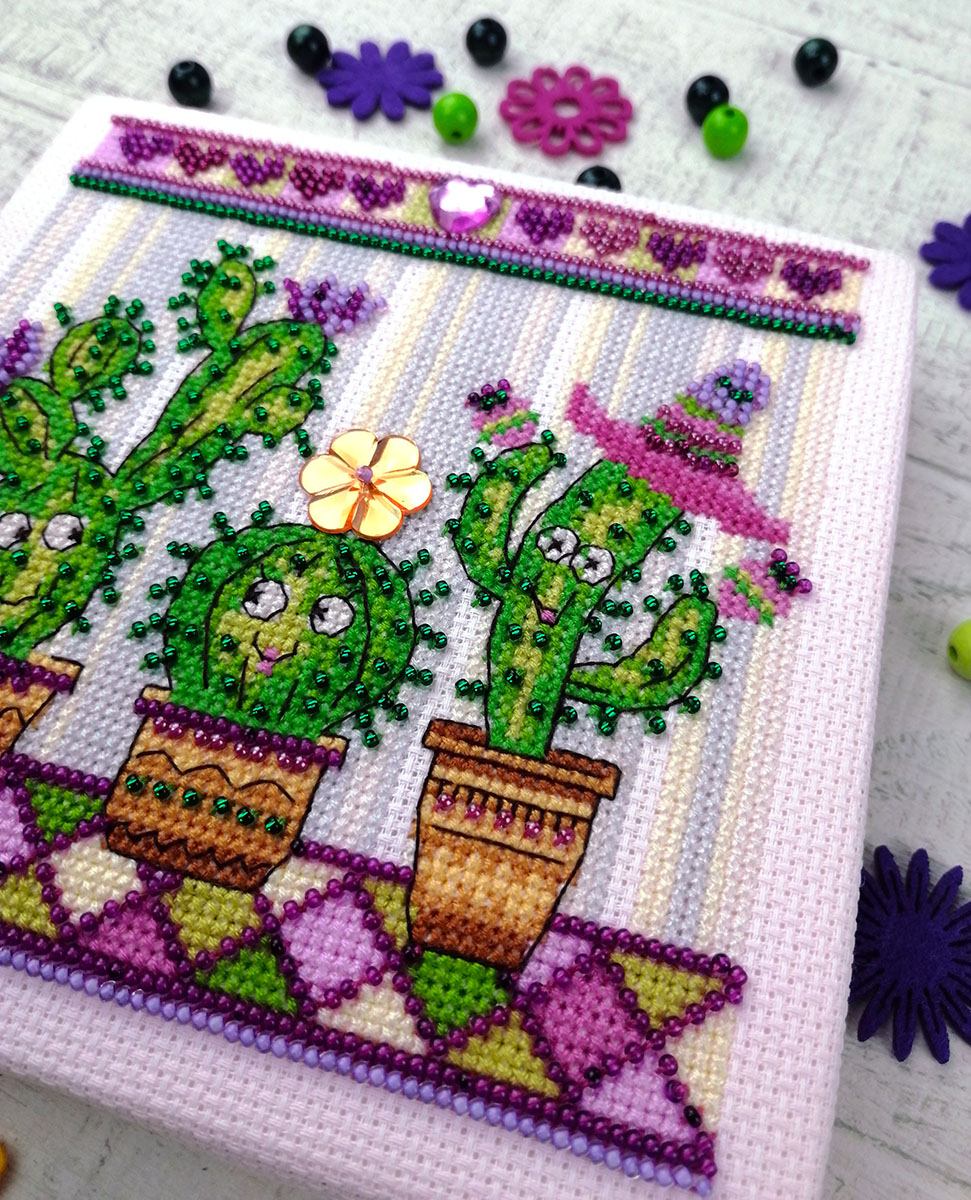 счетный крест + частичная вышивка бисером