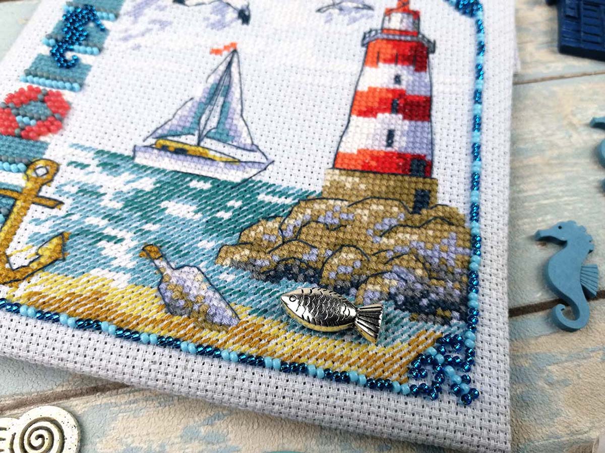 Море-е-е. Это то, что любят все, а если еще и с маяком! Вне сомнений. Акценты в виде очаровательных шармов для такого дизайна необходимы.