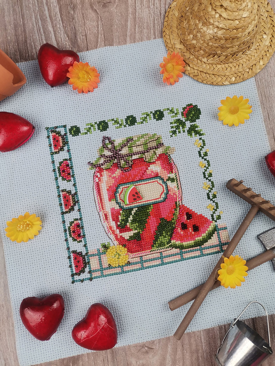 счетный крест + частичная вышивка бисером