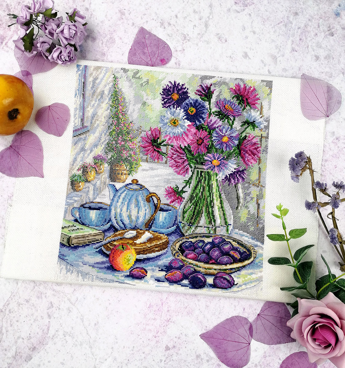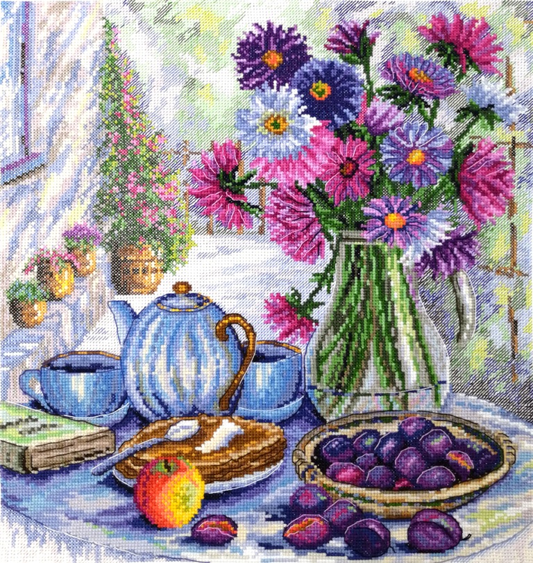 канва Aida 16 ct молочная, мулине Finca 49 цв., игла, инструкция, схема комбинированная