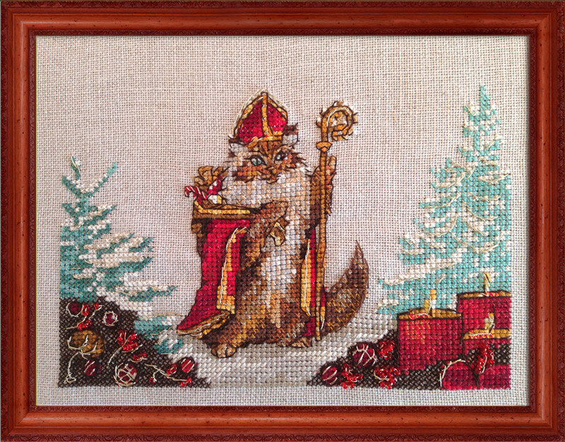 канва Aida 14 ct, мулине DMC, металлическая нить, бисер, 2 иглы, схема, инструкция