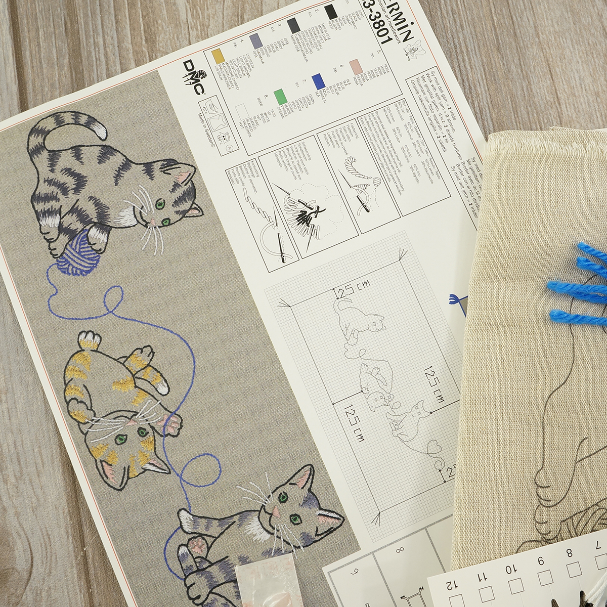 льняная ткань с напечатанным рисунком, мулине, игла, схема, инструкция