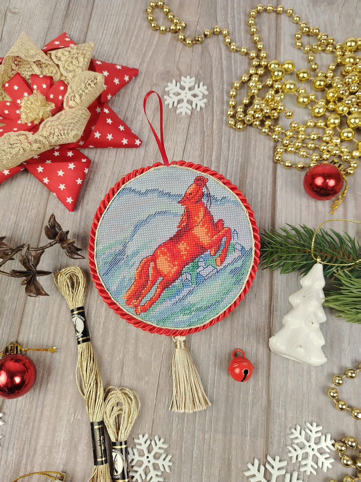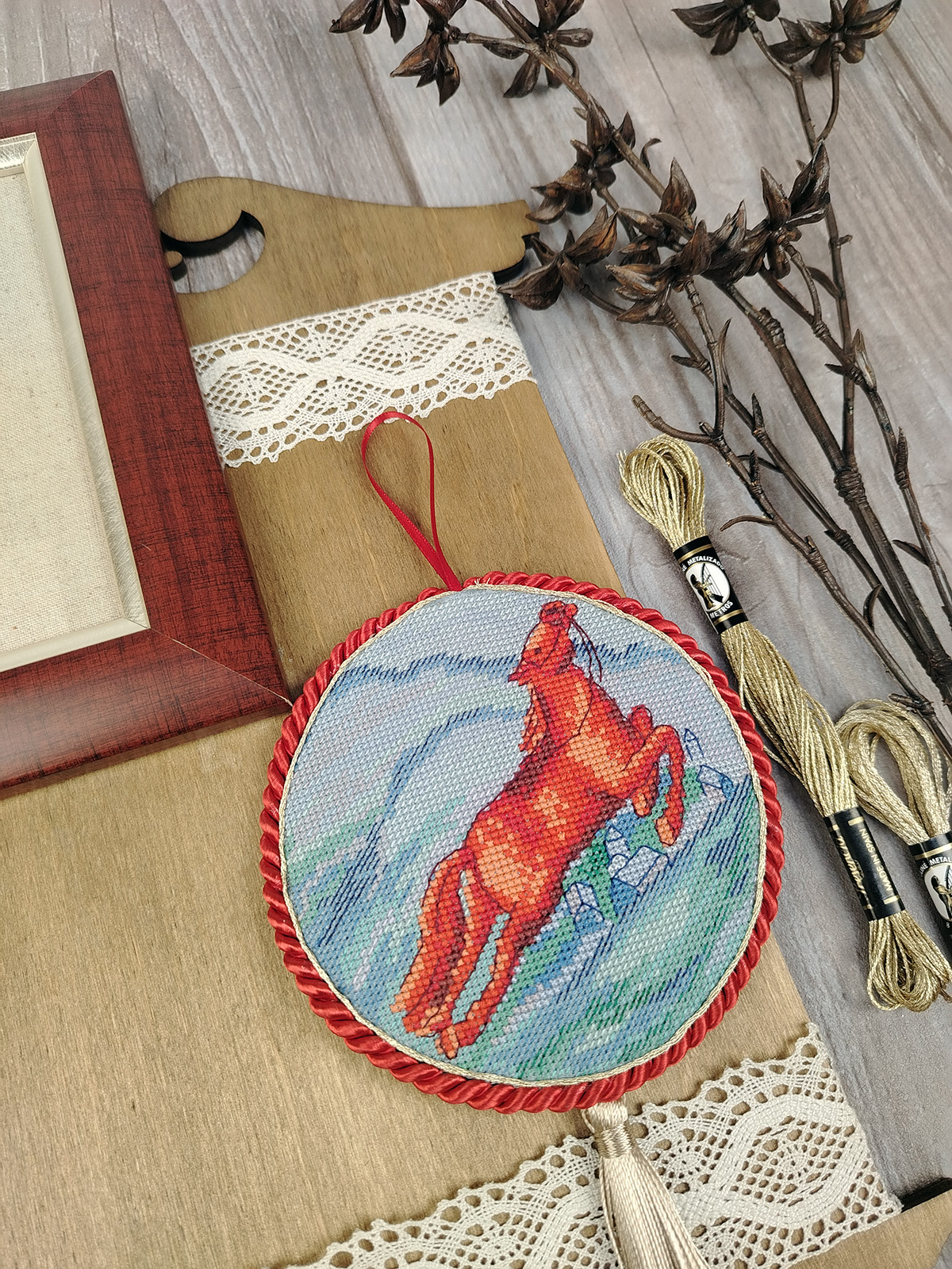 Размер вышивки: 12 х 24 см. Размер готового пинкипа: Д = 11 см