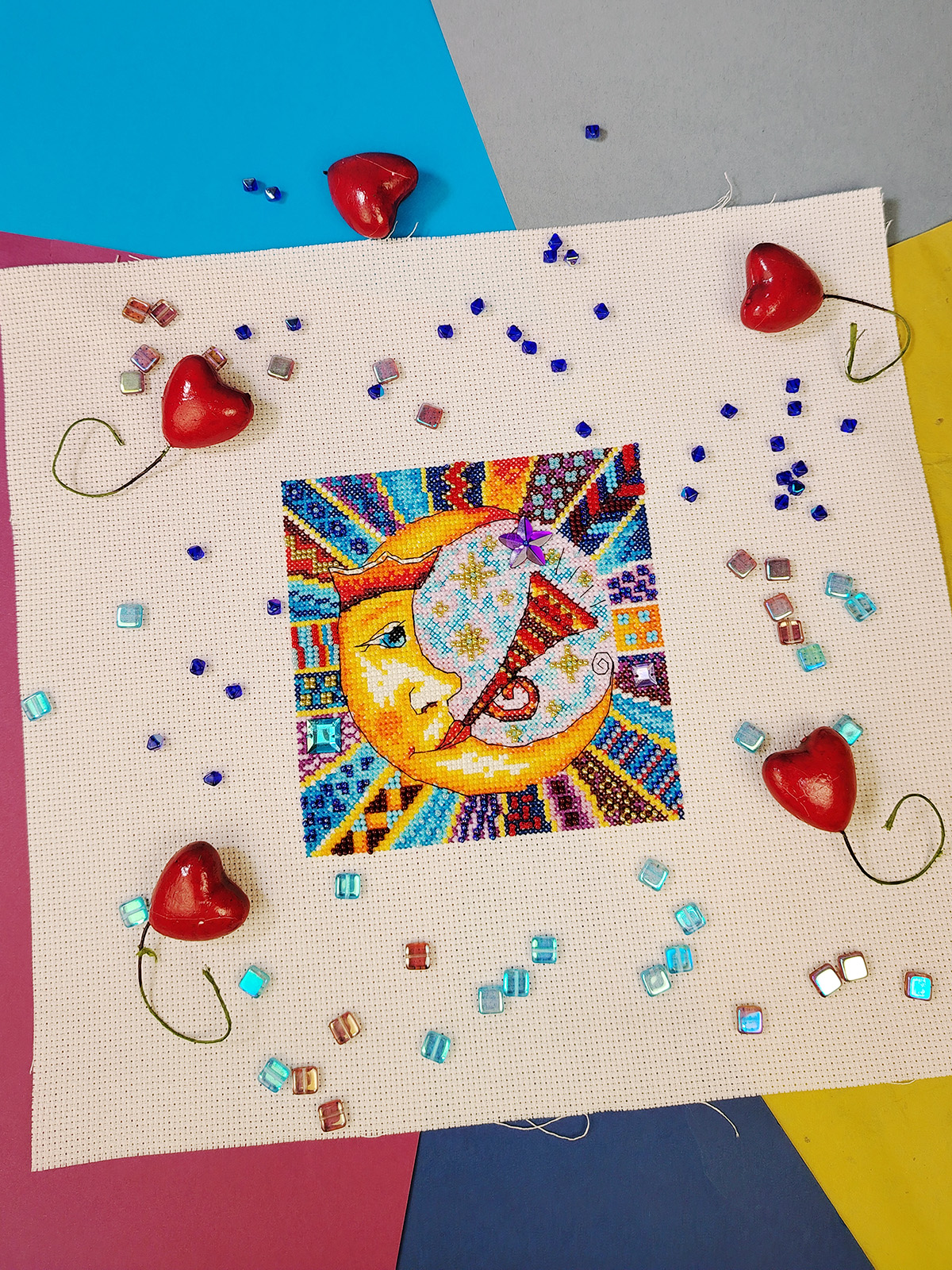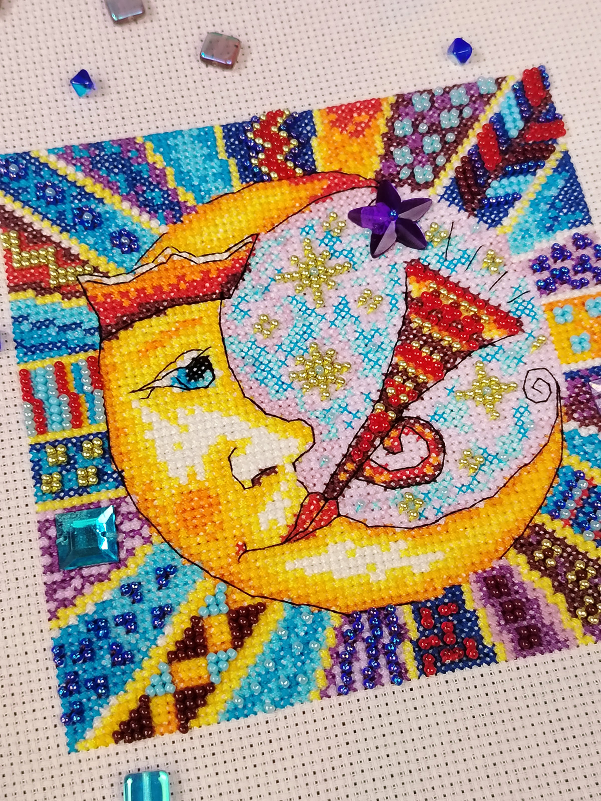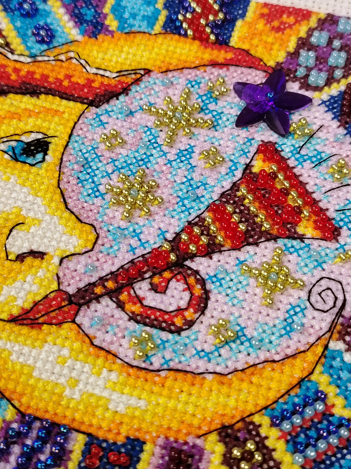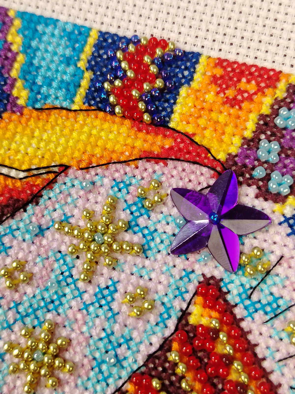 счетный крест + частичная вышивка бисером