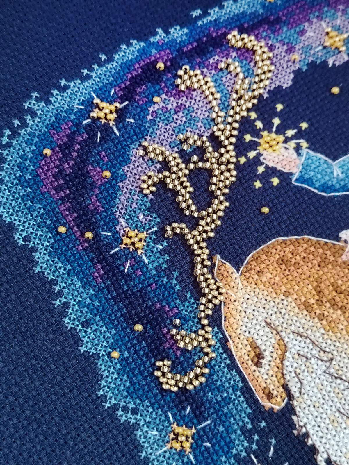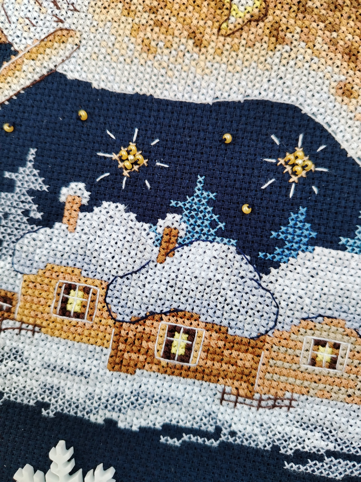 Канва Aida 14 ct темно-синяя, мулине Finca 24 цв., бисер, игла, инструкция, схема черно-белая