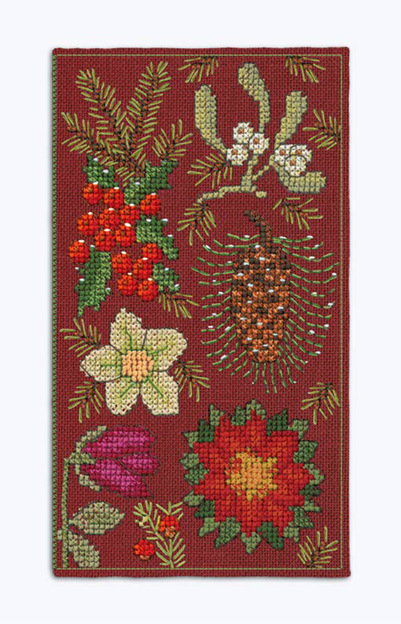 канва лен 12 ct темно-красный, нитки DMC, игла, схема, инструкция, фетр, ленточка