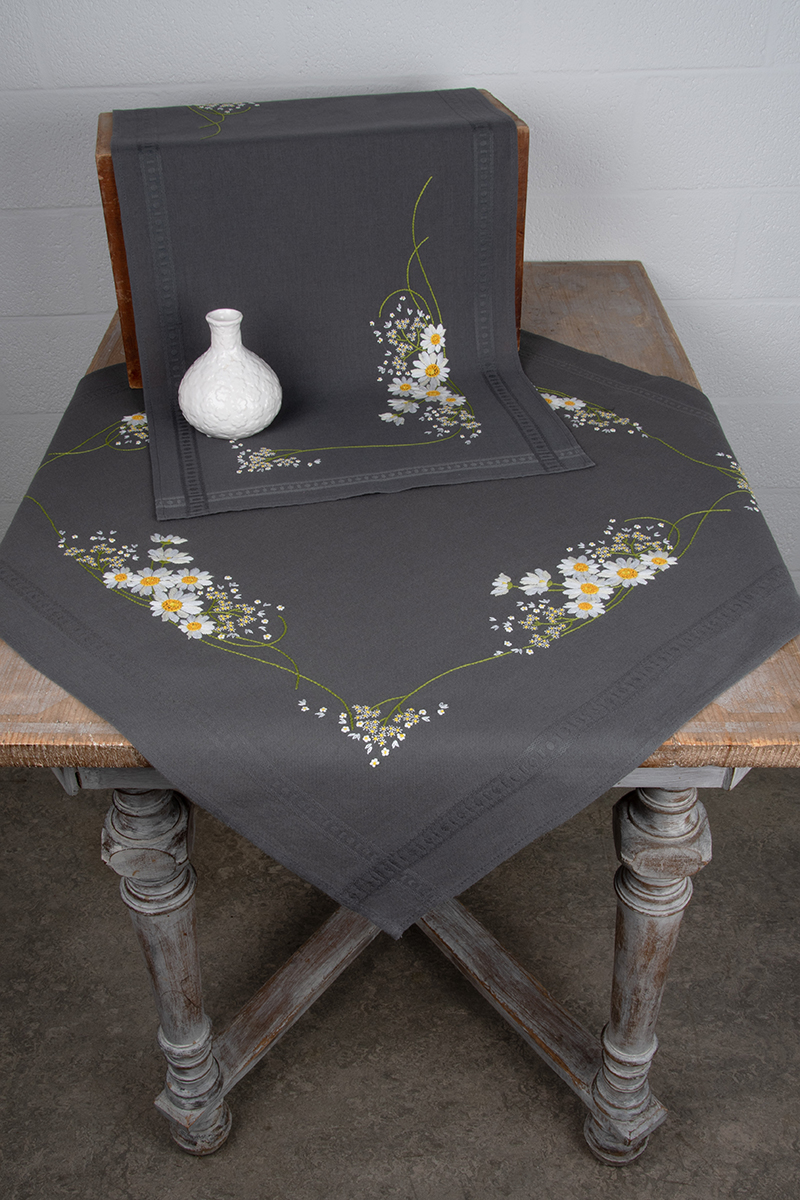 готовая скатерть 100% хлопок с напечатанным рисунком, нити для вышивания, игла, инструкция, схема