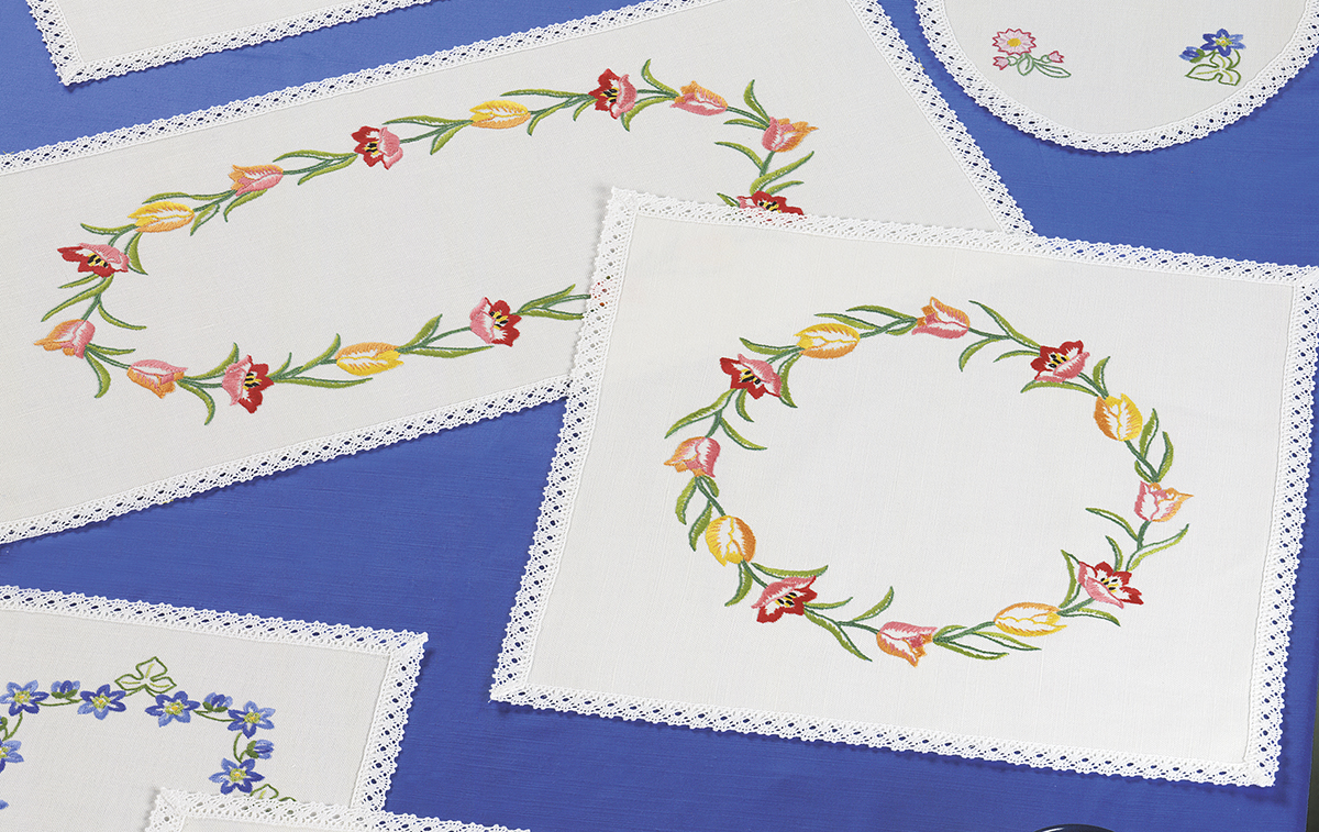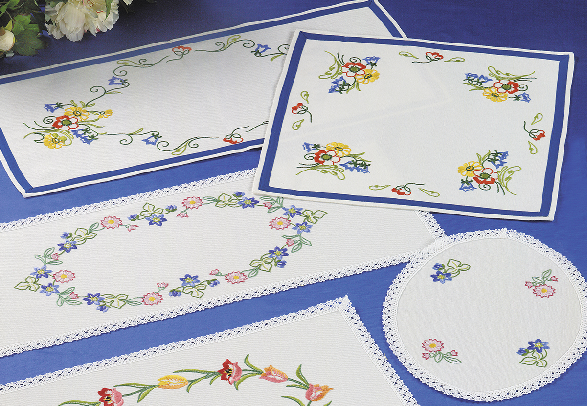 Набор для изготовления скатерти и салфетки. Просто вырежьте по пунктиру и приступите к вышиванию. Нитки и игла в набор не входят.