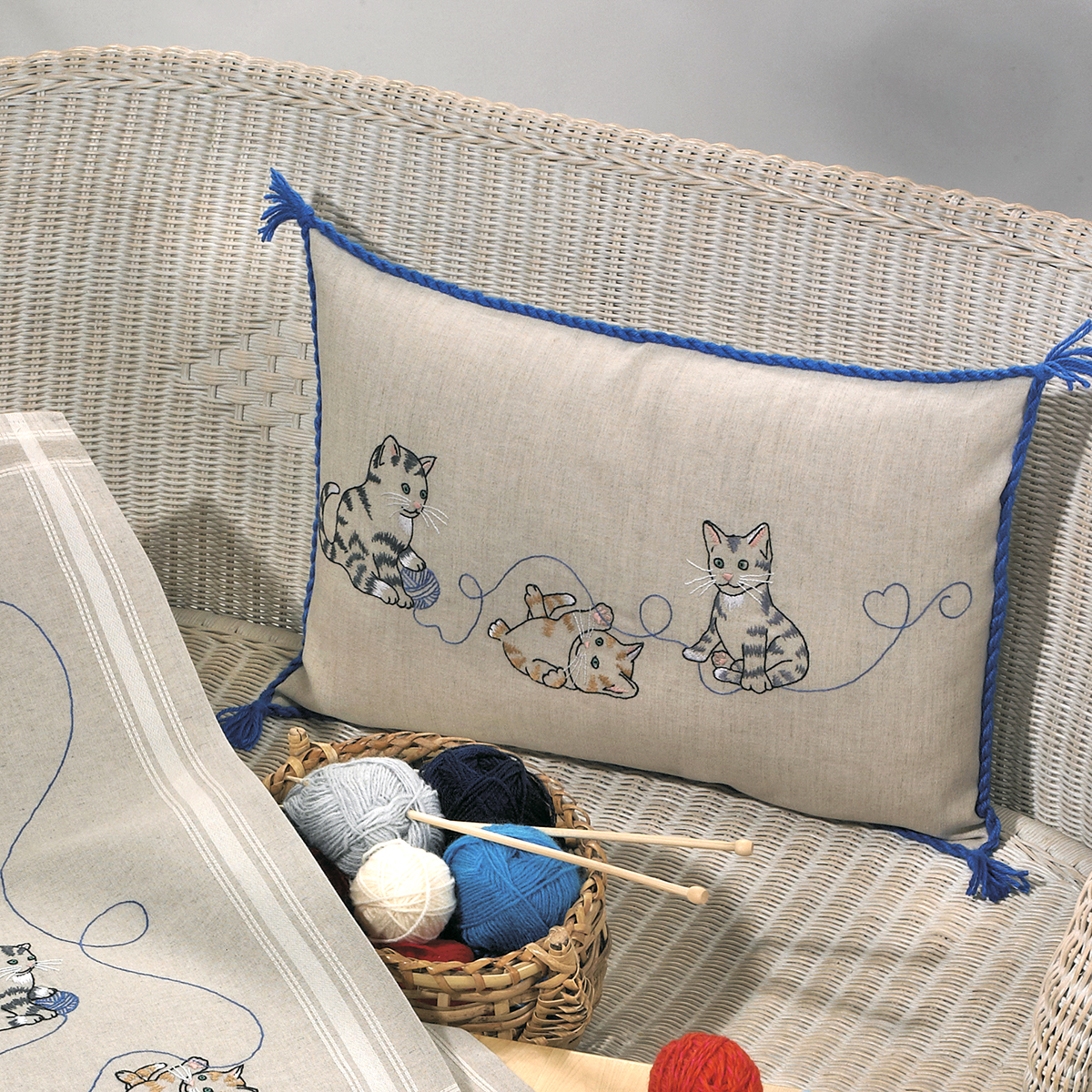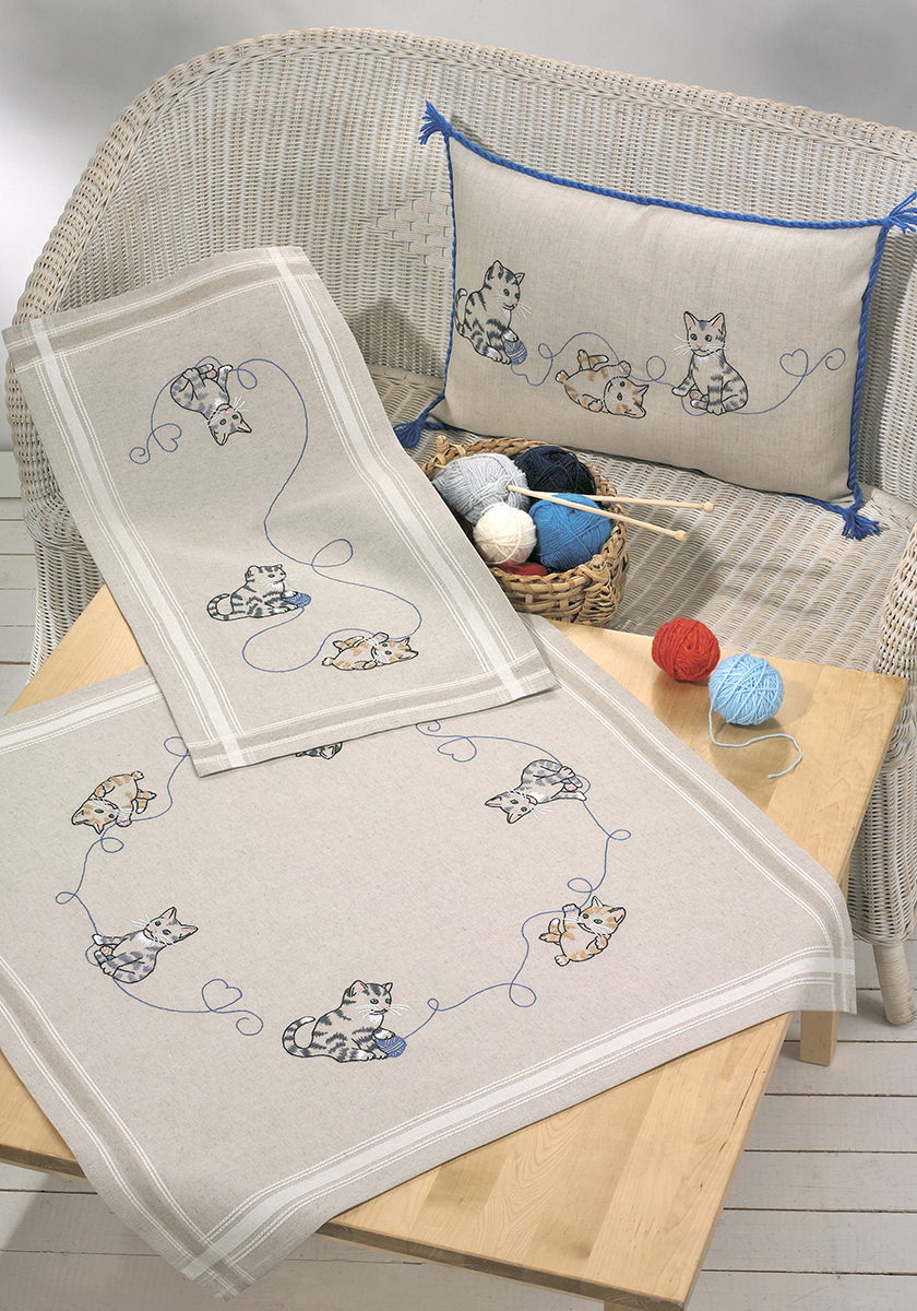 льняная ткань с напечатанным рисунком, мулине, игла, схема, инструкция