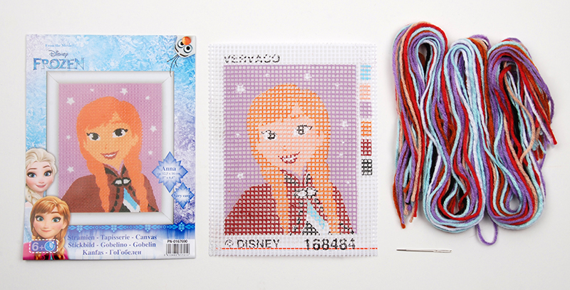 страмин с нанесенным цветным рисунком 26 стежков на 10 см 100% хлопок, нити для вышивания 100% акрил, игла, инструкция