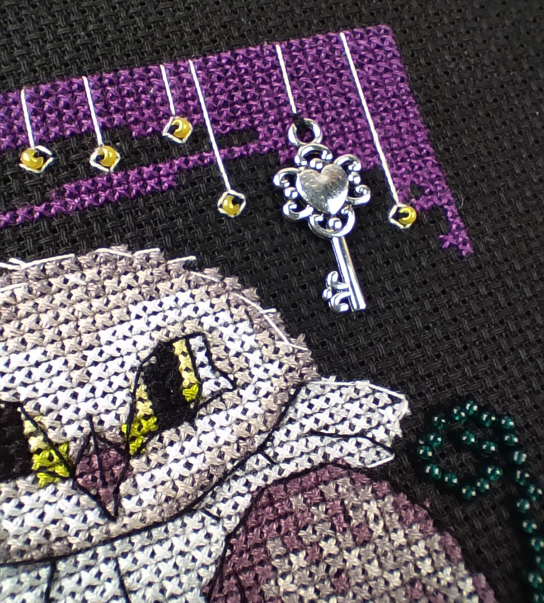 Серию объединяют размер, основа Аида 14ct, частичная вышивка бисером и декоративные пришивные элементы. Мулине Finca не разобраны на планшетки, а связаны узелком. Схема и инструкция черно-белая. Электронная схема XSD, QR код в наборе, указание о наличие схемы - знак на обложке.