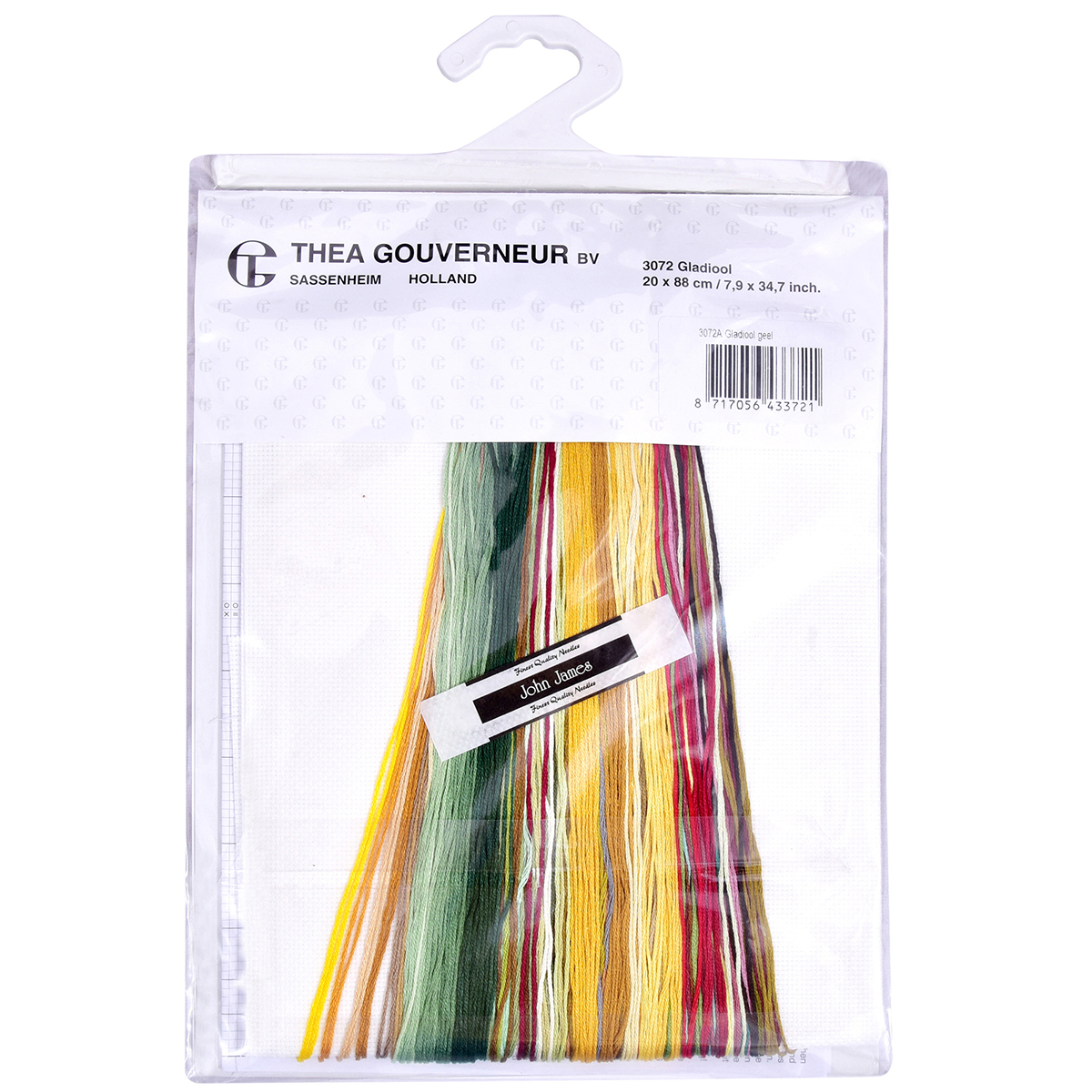 Наборы Thea Gouverneur укомплектованы качественными материалами, такими как мулине DMC из 100% хлопка и разные виды тканей для вышивания производства Zweigart. Наборы обозначенные буквой А после номера содержат в составе канву Aida, если в артикуле есть обозначение .05 – то этот набор укомплектован канвой Aida чёрного цвета. Также в ассортименте есть наборы на 100% льне и канве Jobelan. Черно-белые схемы тщательно прорабатываются вручную. Используется богатая цветовая палитра ниток, но в ассортименте компании есть и монохромные дизайны. Нитки разобраны по символам и закреплены на органайзере. Стрелка на бумажном органайзере указывает вверх, определяя правильность чтения символов.