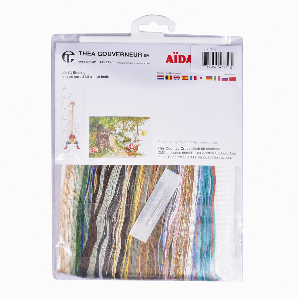 Наборы Thea Gouverneur укомплектованы качественными материалами, такими как мулине DMC из 100% хлопка и разные виды тканей для вышивания производства Zweigart. Наборы обозначенные буквой А после номера содержат в составе канву Aida, если в артикуле есть обозначение .05 – то этот набор укомплектован канвой Aida чёрного цвета. Также в ассортименте есть наборы на 100% льне и канве Jobelan. Черно-белые схемы тщательно прорабатываются вручную. Используется богатая цветовая палитра ниток, но в ассортименте компании есть и монохромные дизайны. Нитки разобраны по символам и закреплены на органайзере. Стрелка на бумажном органайзере указывает вверх, определяя правильность чтения символов.