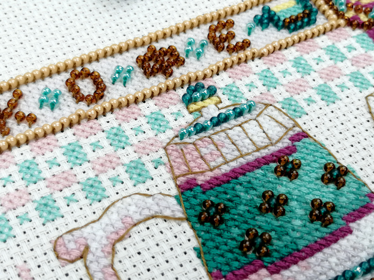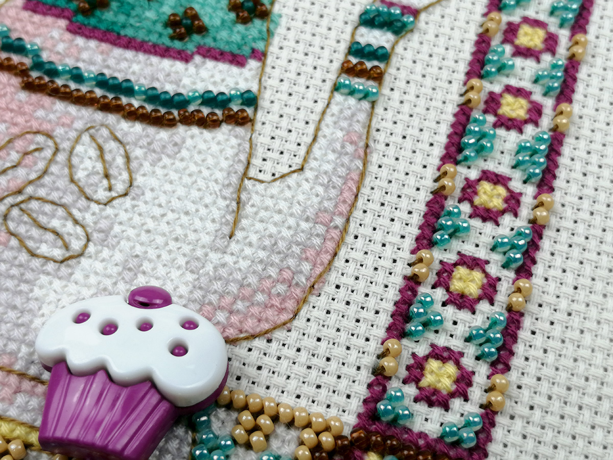 счетный крест + частичная вышивка бисером
