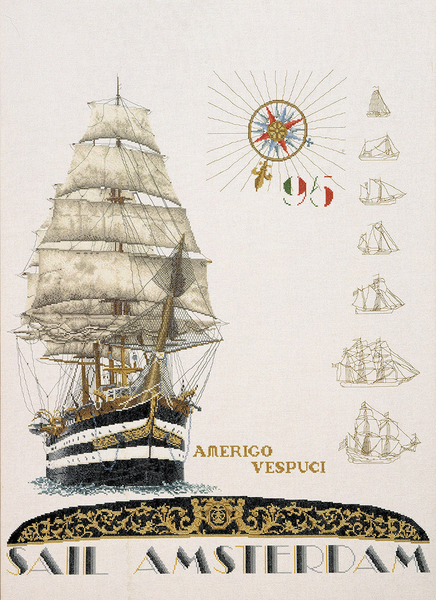 Наборы Thea Gouverneur укомплектованы качественными материалами, такими как мулине DMC из 100% хлопка и разные виды тканей для вышивания производства Zweigart. Наборы обозначенные буквой А после номера содержат в составе канву Aida, если в артикуле есть обозначение .05 – то этот набор укомплектован канвой Aida чёрного цвета. Также в ассортименте есть наборы на 100% льне и канве Jobelan. Черно-белые схемы тщательно прорабатываются вручную. Используется богатая цветовая палитра ниток, но в ассортименте компании есть и монохромные дизайны. Нитки разобраны по символам и закреплены на органайзере. Стрелка на бумажном органайзере указывает вверх, определяя правильность чтения символов.