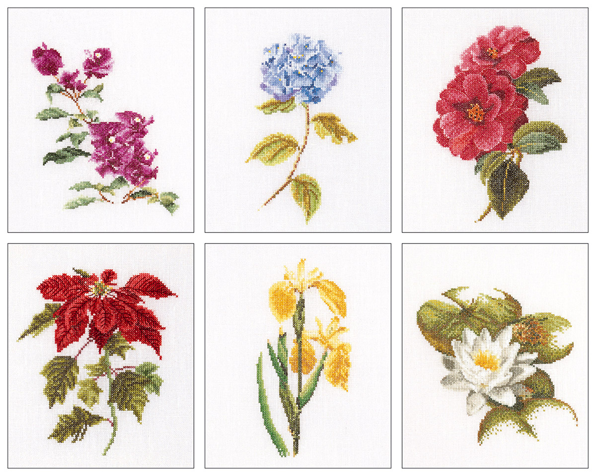 Наборы Thea Gouverneur укомплектованы качественными материалами, такими как мулине DMC из 100% хлопка и разные виды тканей для вышивания производства Zweigart. Наборы обозначенные буквой А после номера содержат в составе канву Aida, если в артикуле есть обозначение .05 – то этот набор укомплектован канвой Aida чёрного цвета. Также в ассортименте есть наборы на 100% льне и канве Jobelan. Черно-белые схемы тщательно прорабатываются вручную. Используется богатая цветовая палитра ниток, но в ассортименте компании есть и монохромные дизайны. Нитки разобраны по символам и закреплены на органайзере. Стрелка на бумажном органайзере указывает вверх, определяя правильность чтения символов.