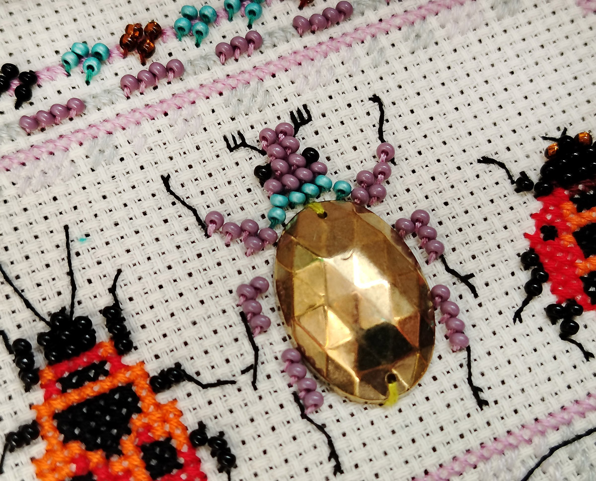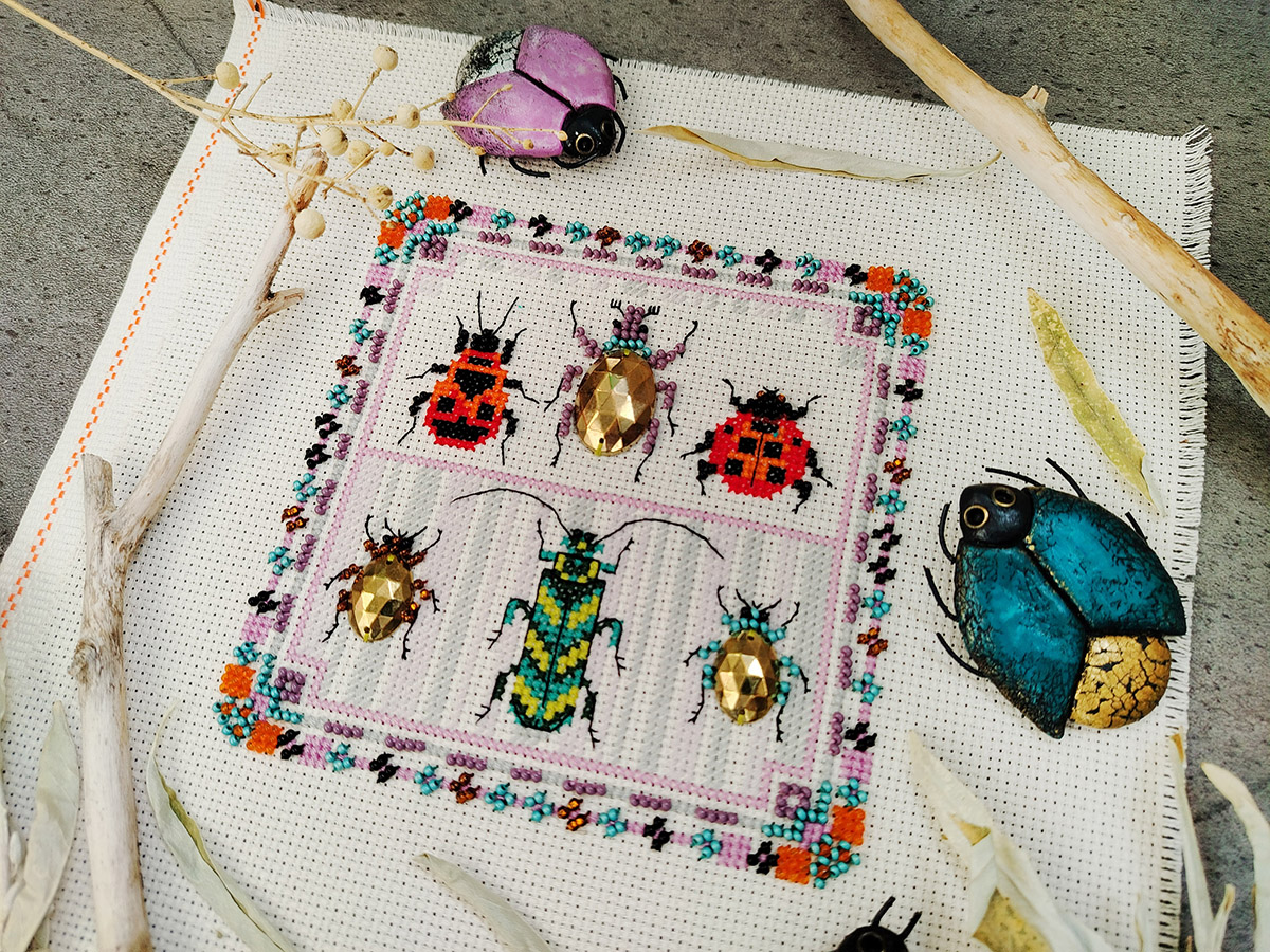 счетный крест + частичная вышивка бисером