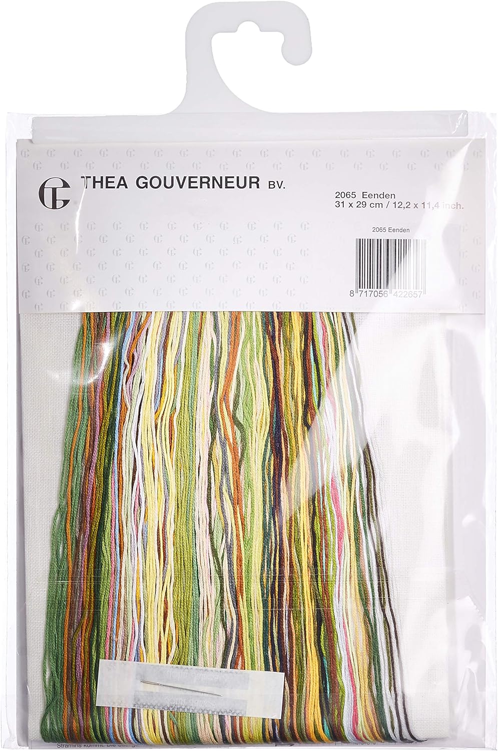 Наборы Thea Gouverneur укомплектованы качественными материалами, такими как мулине DMC из 100% хлопка и разные виды тканей для вышивания производства Zweigart. Наборы обозначенные буквой А после номера содержат в составе канву Aida, если в артикуле есть обозначение .05 – то этот набор укомплектован канвой Aida чёрного цвета. Также в ассортименте есть наборы на 100% льне и канве Jobelan. Черно-белые схемы тщательно прорабатываются вручную. Используется богатая цветовая палитра ниток, но в ассортименте компании есть и монохромные дизайны. Нитки разобраны по символам и закреплены на органайзере. Стрелка на бумажном органайзере указывает вверх, определяя правильность чтения символов.
