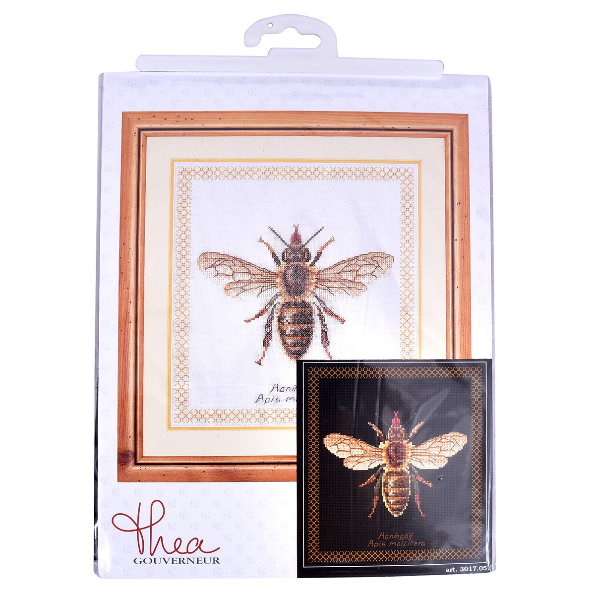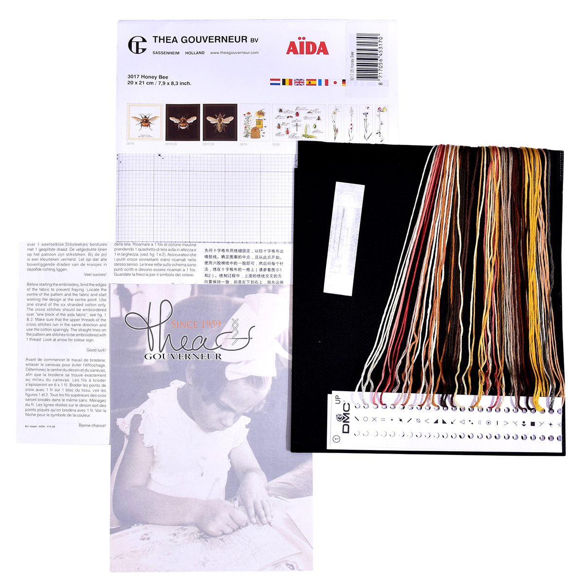 Наборы Thea Gouverneur укомплектованы качественными материалами, такими как мулине DMC из 100% хлопка и разные виды тканей для вышивания производства Zweigart. Наборы обозначенные буквой А после номера содержат в составе канву Aida, если в артикуле есть обозначение .05 – то этот набор укомплектован канвой Aida чёрного цвета. Также в ассортименте есть наборы на 100% льне и канве Jobelan. Черно-белые схемы тщательно прорабатываются вручную. Используется богатая цветовая палитра ниток, но в ассортименте компании есть и монохромные дизайны. Нитки разобраны по символам и закреплены на органайзере. Стрелка на бумажном органайзере указывает вверх, определяя правильность чтения символов.