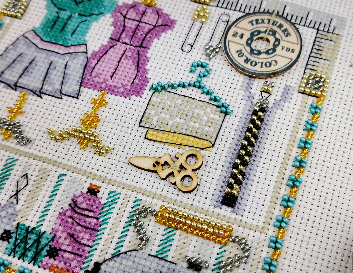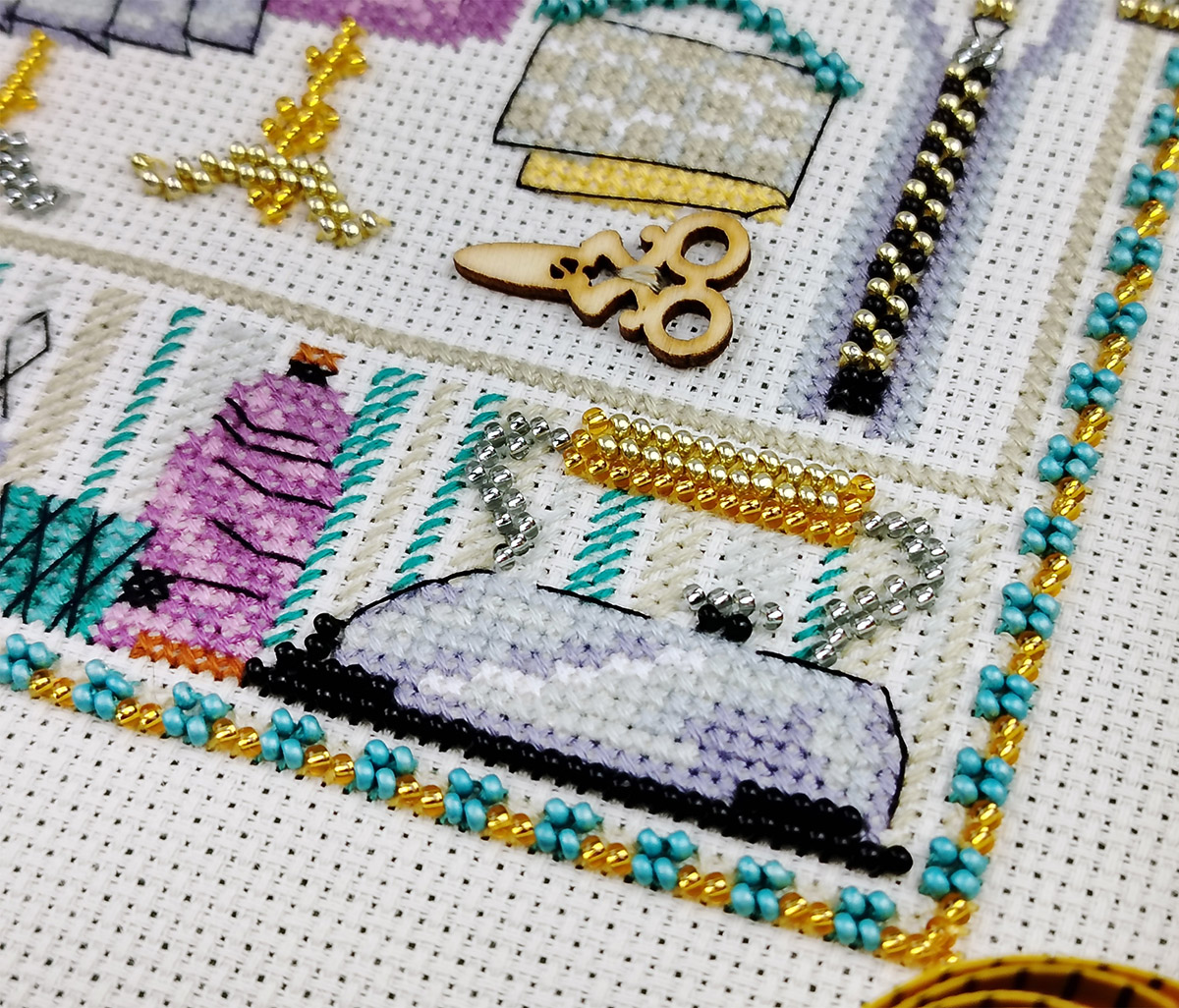 Серию объединяют размер, основа Аида 14ct, частичная вышивка бисером и декоративные пришивные элементы. Мулине Finca не разобраны на планшетки, а связаны узелком. Схема и инструкция черно-белая. Электронная схема XSD, QR код в наборе, указание о наличие схемы - знак на обложке.