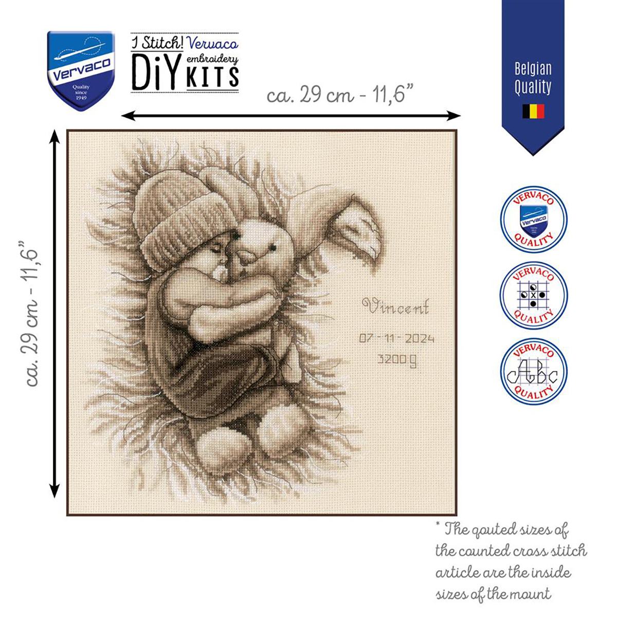 канва 100% хлопок Aida 14 ct белая, нити 100% хлопок, игла, схема, инструкция