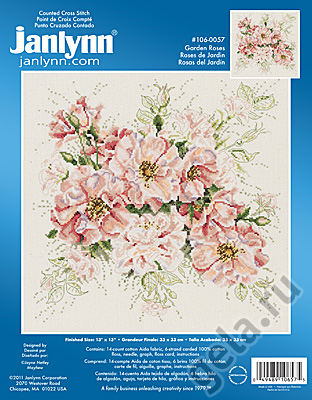 Garden Roses - это легкий, весенний букет из цветов розовых роз. Этот прекрасный дизайн принадлежит Джейн Нетли Мэйхью. Сделано в США компанией Janlynn.