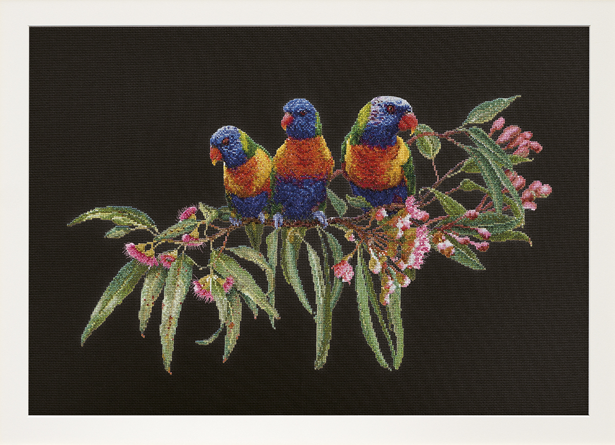 Наборы Thea Gouverneur укомплектованы качественными материалами, такими как мулине DMC из 100% хлопка и разные виды тканей для вышивания производства Zweigart. Наборы обозначенные буквой А после номера содержат в составе канву Aida, если в артикуле есть обозначение .05 – то этот набор укомплектован канвой Aida чёрного цвета. Также в ассортименте есть наборы на 100% льне и канве Jobelan. Черно-белые схемы тщательно прорабатываются вручную. Используется богатая цветовая палитра ниток, но в ассортименте компании есть и монохромные дизайны. Нитки разобраны по символам и закреплены на органайзере. Стрелка на бумажном органайзере указывает вверх, определяя правильность чтения символов.