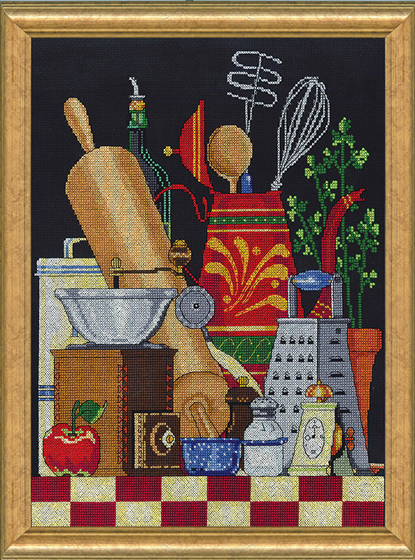 Кухонный натюрморт - это дизайн вышивки счетным крестом от Joseph Holodook. Этот дизайн имеет все необходимое для кухни. Готовый вариант станет прекрасным украшением вашей кухни. Вышивайте с удовольствием!