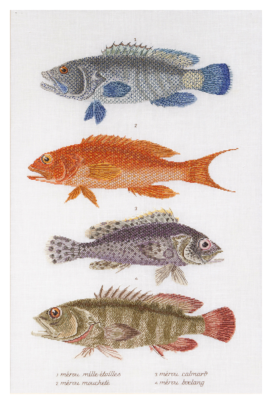 Наборы Thea Gouverneur укомплектованы качественными материалами, такими как мулине DMC из 100% хлопка и разные виды тканей для вышивания производства Zweigart. Наборы обозначенные буквой А после номера содержат в составе канву Aida, если в артикуле есть обозначение .05 – то этот набор укомплектован канвой Aida чёрного цвета. Также в ассортименте есть наборы на 100% льне и канве Jobelan. Черно-белые схемы тщательно прорабатываются вручную. Используется богатая цветовая палитра ниток, но в ассортименте компании есть и монохромные дизайны. Нитки разобраны по символам и закреплены на органайзере. Стрелка на бумажном органайзере указывает вверх, определяя правильность чтения символов.