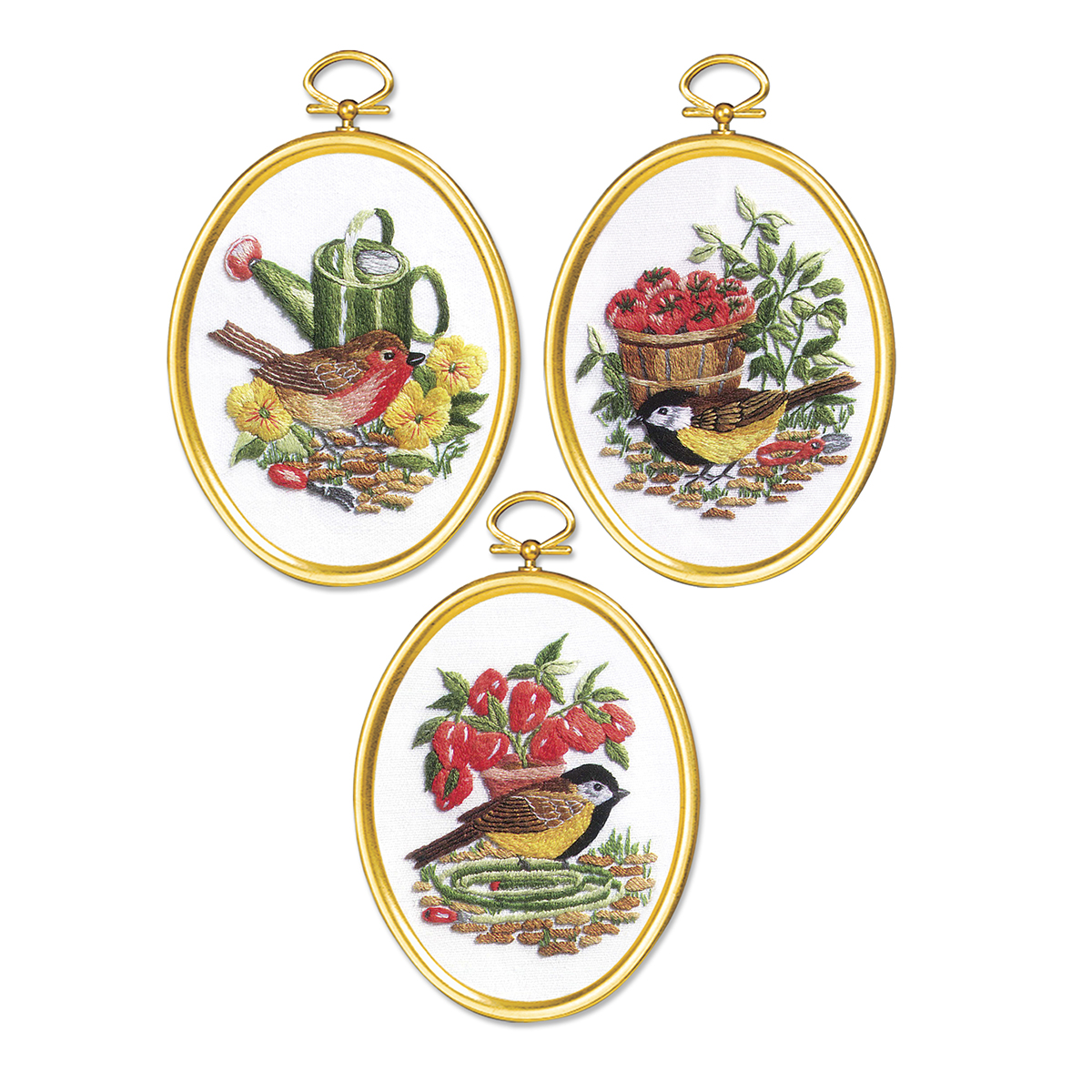 Садовые птицы в наборе из 3-х штук. Эти вышивальные узоры - птицы в их лучшем садоводстве. Готовые работы повесьте рядом или отдельно по всему дому. Вышивайте с удовольствием!