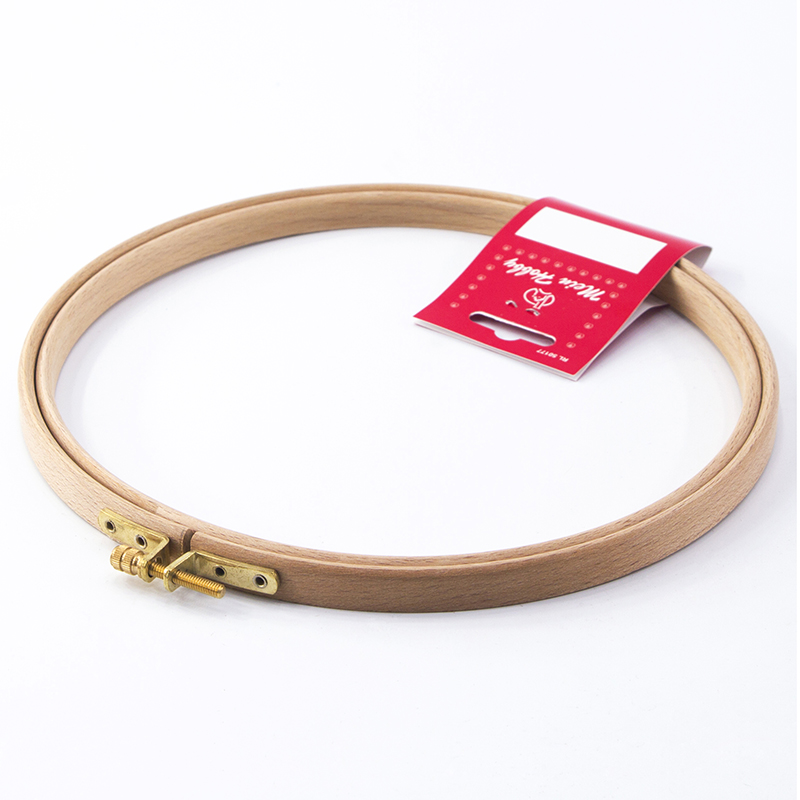 Пяльцы изготовлены из 3-х слойного клееного полированного бруса (бука), имеют латунный винт для надежного закрепления ткани в пяльцах.