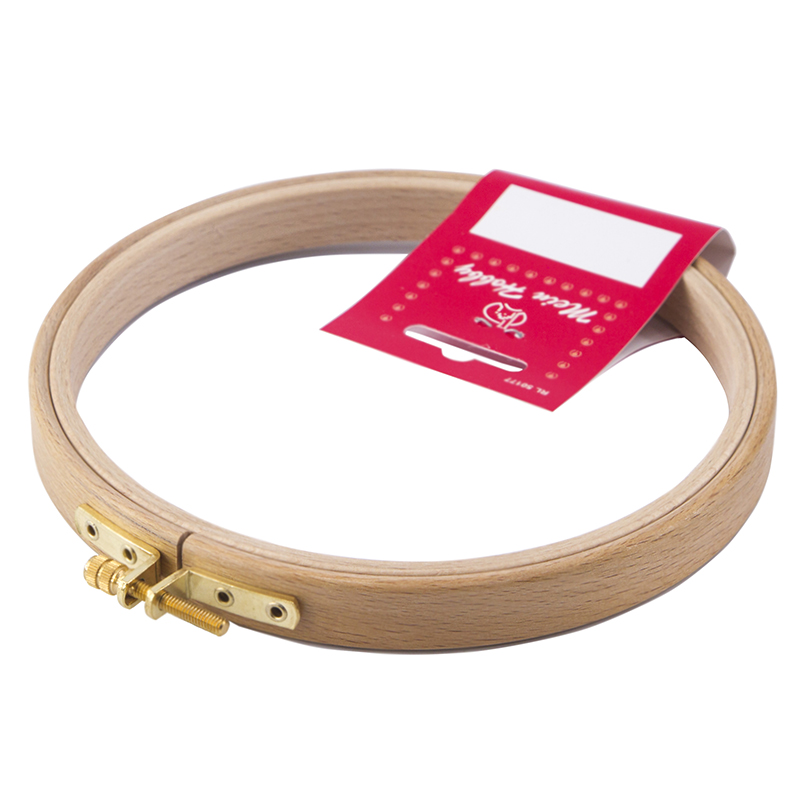 Пяльцы изготовлены из 3-х слойного клееного полированного бруса (бука), имеют латунный винт для надежного закрепления ткани в пяльцах.