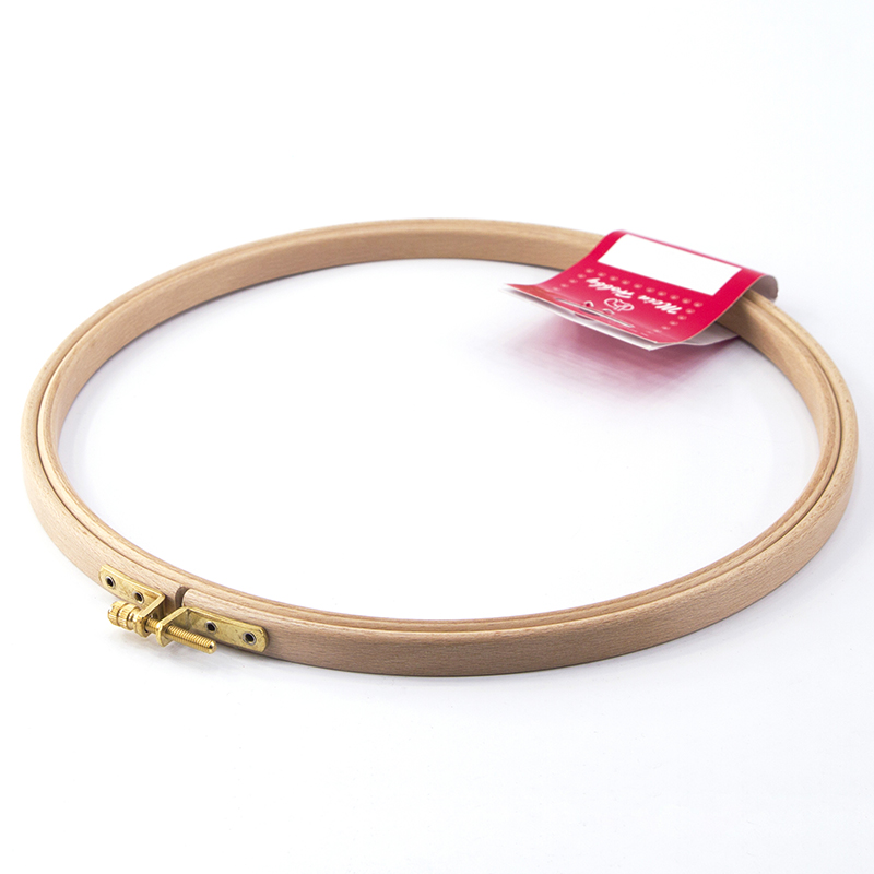 Пяльцы изготовлены из 3-х слойного клееного полированного бруса (бука), имеют латунный винт для надежного закрепления ткани в пяльцах.