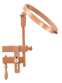 Пяльцы для вышивания с креплением к столу, возможная толщина столешницы до 75 мм, материал – бук, тройная склейка, полированные с защитным лаком, бронзовые стягивающие винты, регулировка по высоте и углу наклона.