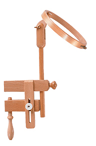 Пяльцы для вышивания с креплением к столу, возможная толщина столешницы до 75 мм, материал – бук, тройная склейка, полированные с защитным лаком, бронзовые стягивающие винты, регулировка по высоте и углу наклона.