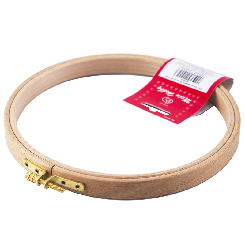Пяльцы изготовлены из 3-х слойного клееного полированного бруса (бука), имеют латунный винт для надежного закрепления ткани в пяльцах.